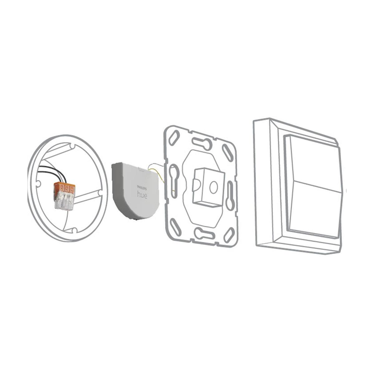 Deine smarten Lampen sind niemals ?unerreichbar?, auch wenn jemand das Licht mit dem normalen Lichtschalter ausschaltet. Dank des Philips Hue Wandschalter Moduls werden Deine Lampen immer mit Strom versorgt.