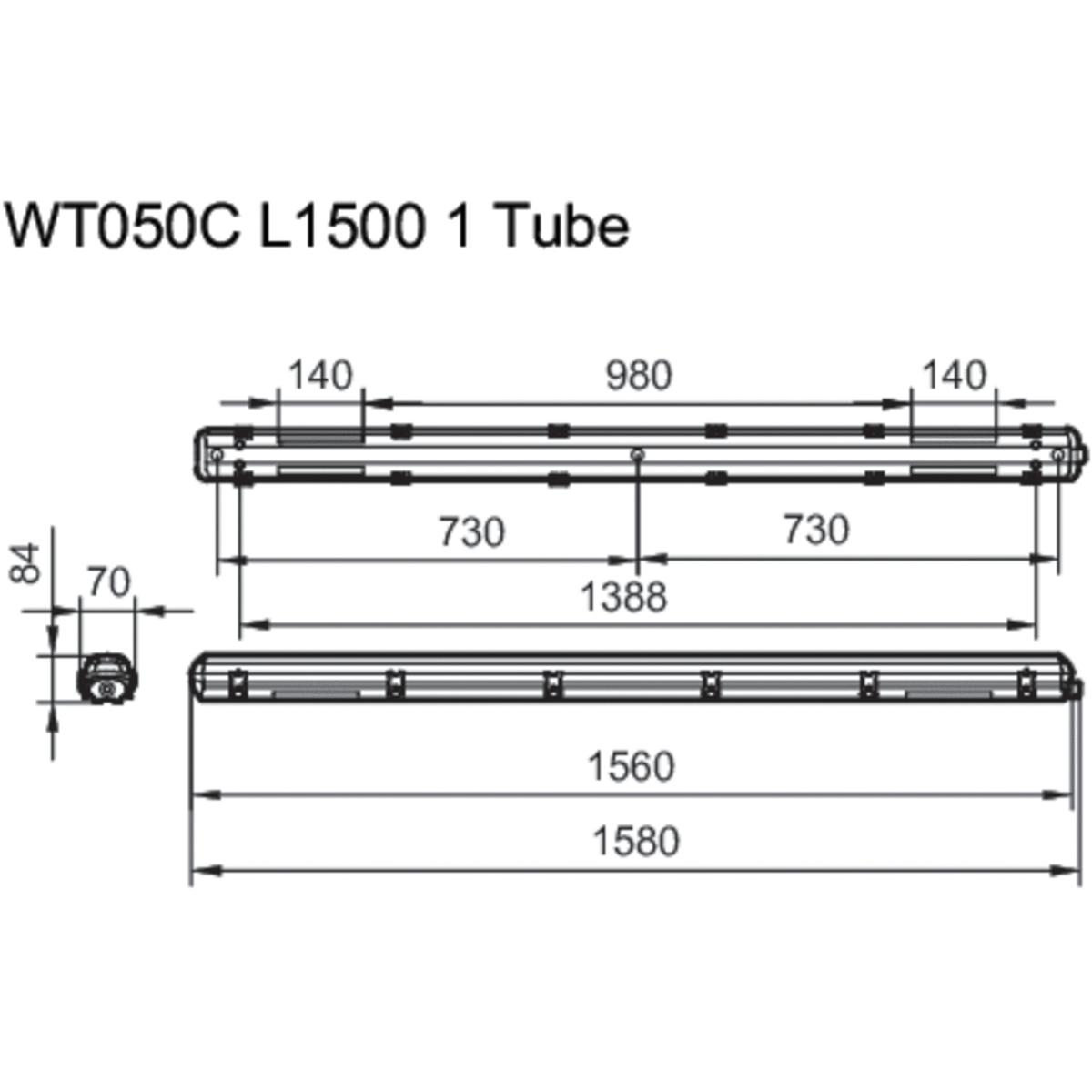 - Abmessungen (Höhe x Breite x Tiefe) 84 x 70 x 1580 mm (3.3 x 2.8 x 62.2 in)