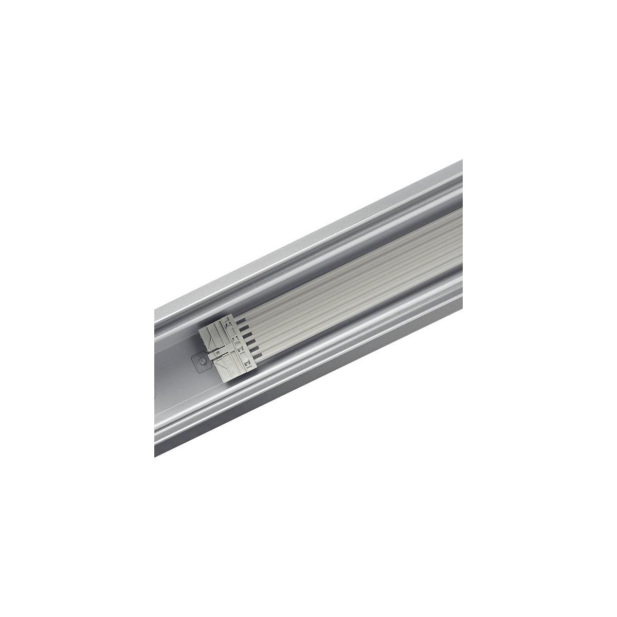 Gehäuse aus rollprofiliertem verzinkten Stahlblech, Weiß (RAL9016) einbrennlackiert. Durchgangsverdrahtung aus Flachbandkabel, elektrische Verbindung Tragschiene/Tragschiene über Stecker- /Buchsensystem.Phasenwahl am Steckkontakt ab Werk eingestellt. Geeignet zur bauseitigen Aufnahme von bis zu zwei NYM-Leitungen.