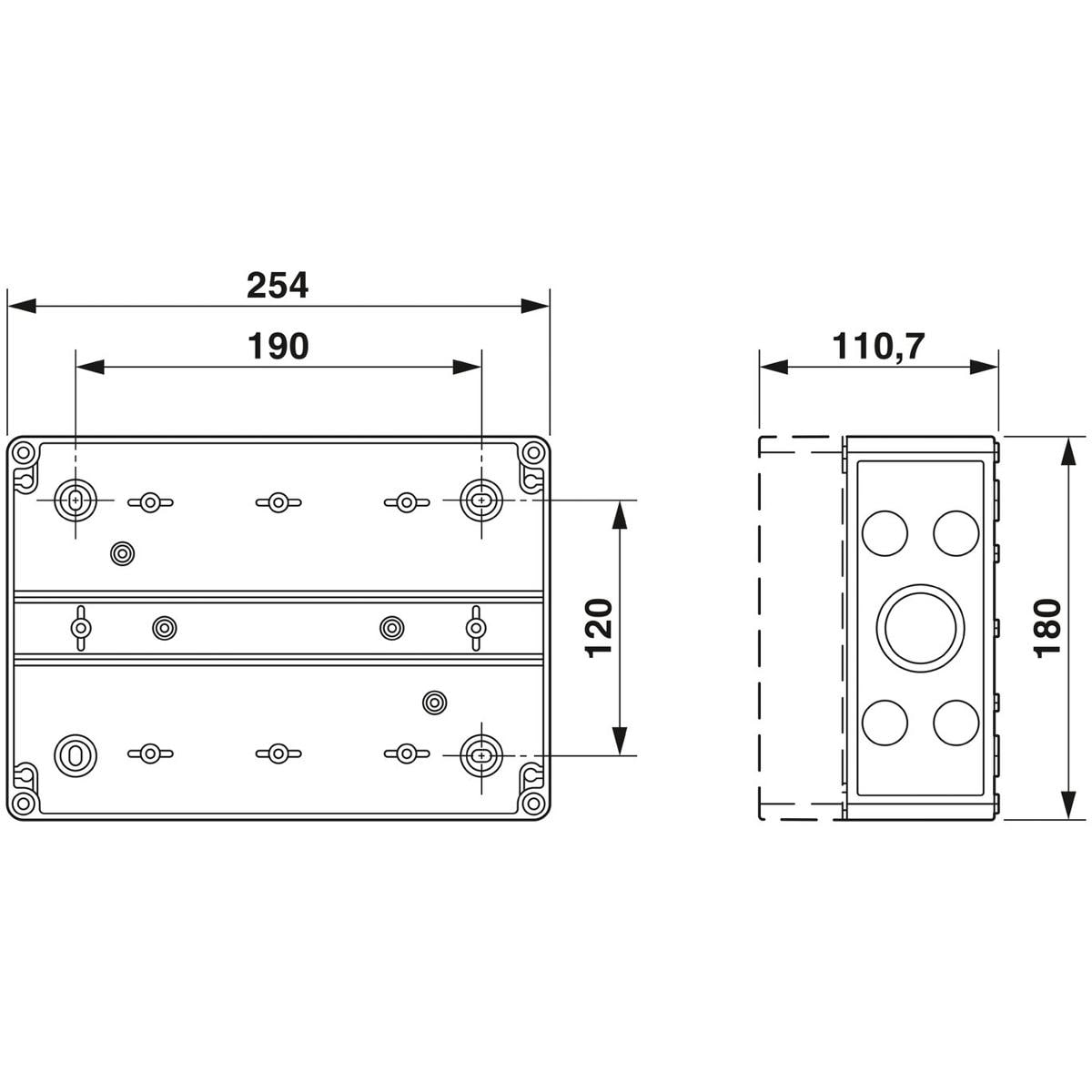 - Breite / Höhe / Tiefe: 254 mm / 180 mm / 111 mm (Gehäusemaße)
