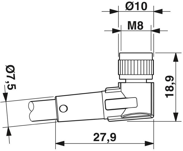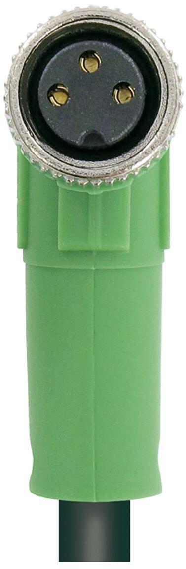 Sensor-/Aktor-Kabel, 3-polig halogenfrei, freies Leitungsende, auf Buchse gewinkelt M8, Kodierung: A, Kabellänge: 10 m.