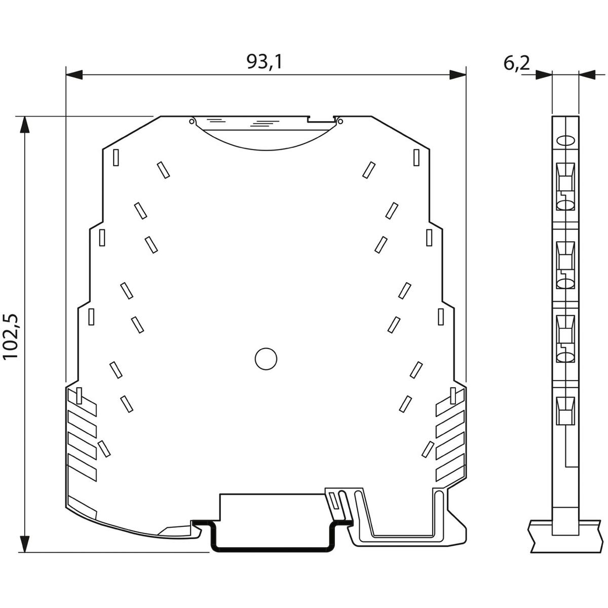 - Montagehinweis: Zur Brückung der Versorgungsspannung kann der Tragschienen-Busverbinder eingesetzt werden, aufschnappbar auf 35-mm-Tragschiene nach EN 60715.