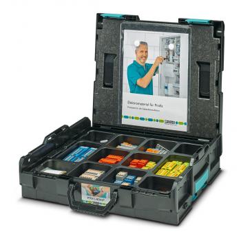 Starterkit, PTFIX im praktischen Sortimo-Systemkoffer L-BOXX 102. Jetzt auch für 10 mm2 Einspeisungen. 92 Verteilerblöcke u.a. mit Einspeisekontakt bis 10 mm2 und Abgriffkontakt bis 6 mm2, 53 Tragschienenadapter, 16 Schraubflansche, Steckbrücken und Markierung, Farbe: schwarz.