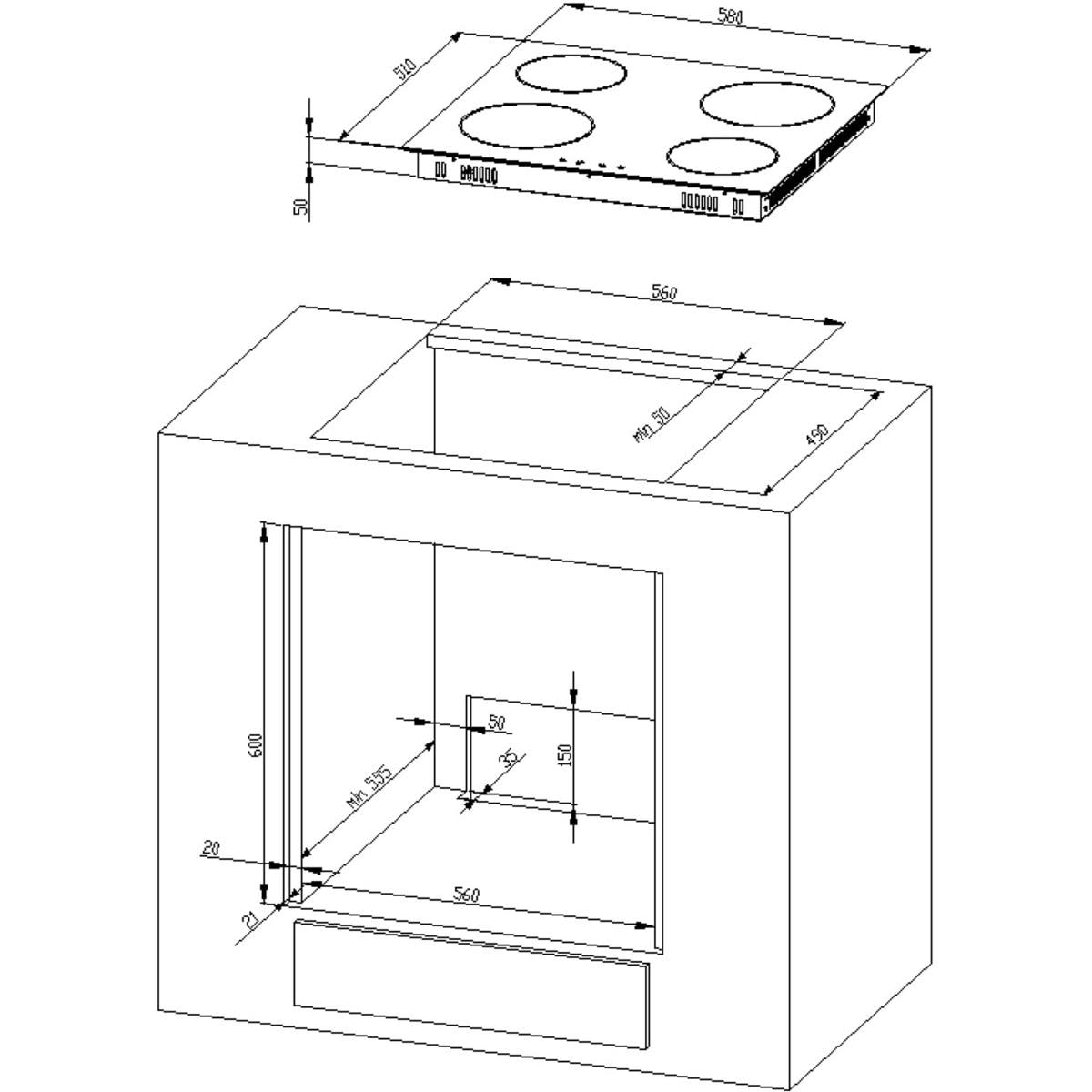 - Gerätemaß Kochfeld H X B X T in cm: 5,00 x 58,00 x 51,00