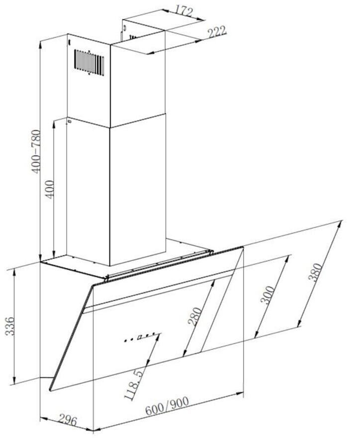 - Abmessungen Gerät H x B x T in cm: 33,60 - 111,60 x 60,00 x 29,60