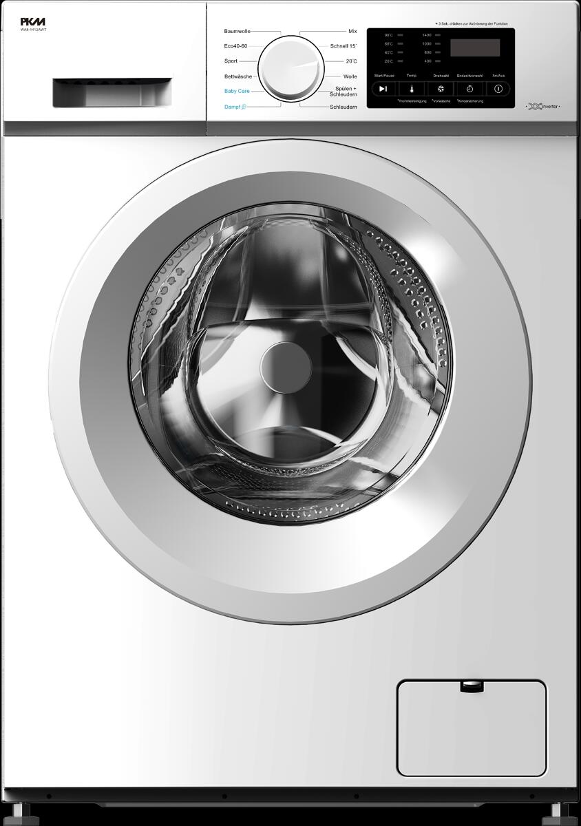 PKM WA8-1412AWT 8kg Frontlader Waschmaschine, 60 cm breit, 1400 U/min, AquaStop, Endzeitvorwahl, Kindersicherung, weiß