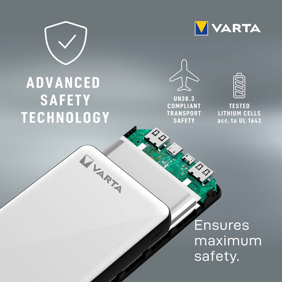 Fortschrittliche Sicherheitstechnologie und schlankes VARTA-Design machen die VARTA Energy Power Banks zum perfekten Begleiter für Flexibilität und Unabhängigkeit unterwegs.