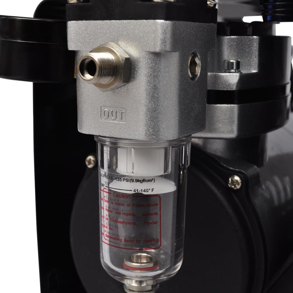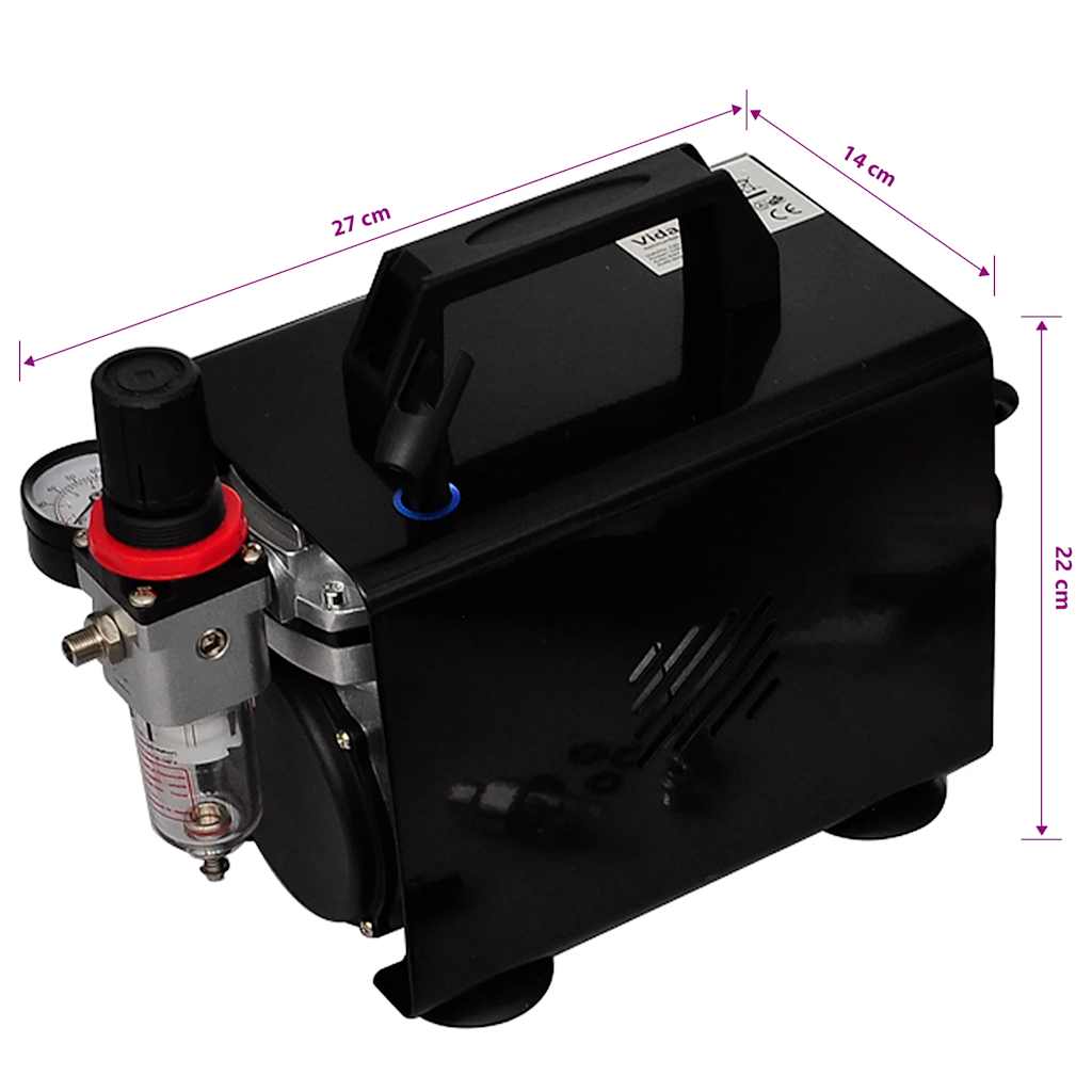 Dieses Kompressorset ist für die Verwendung mit Airbrush und kleinen Spritzpistolen konzipiert. Dieses hochwertige Airbrush-Set ist ideal geeignet für alle Arten von Modelbau, Spray Tanning, Modellieren, Kosmetik, Tattoos, T-Shirts, Fingernägel, Fahrradhelm und viel mehr!Das Set besteht aus einem Airbrush Kompressor, 3 Airbrush-Pistolen und weiteren umfanreichem Zubehör:1 x Mini Kolbenkompressor Hohwertiger ölfreier Kolbenkompressor mit Monometer, Druckluftregler, Luftfilter, Abdeckung mit eingebaute Pistole Halterung. Der Kompressor ist verwendbar für alle Airbrushpistolen mit 0,2~1,00 mm Düsen.Funktionen und MerkmaleKompressor mit Griffabdeckung und Airbrush-Halterung.Luftfilter und ManometerVerstellbare Druckluft Ölfrei Keine Luft verschmutzt.Beginnt mit DruckDurchgehende kraftvolle ArbeitThermisch geschutzGeräuscharm: 47dBAbschaltautomatik2. Airbrush Spritzpistole mit Single Funktion-7 tlg. SetAirbrush Spritzpistole mit 0,8mm Düse für verschiedene Airbrushenmöglichkeiten. Geeignet für alle Arten von Modelbau, Kosmetik, Tattos, Lackierungen, Illustration und viel mehr! Ideal für grobes Arbeiten: z.B Grundierungen, Hintergründe usw..3. Airbrush Spritzpistole mit Double Funktion-8 tlg. SetDiese Airbrush Spritzpistole mit Doppelfunktion (8-teilig) kann für alle Arten von Modellbau, Kosmetik, Tattos, Malerei, Illustration und vieles mehr verwendet werden.4. Airbrush Spritzpistole mit Double Funktion-9 tlg. SetDas gesamte Set beinhaltet eine feine Kopf-Airbrush, 5 Fuß. Vinyl-Schlauch, 2 Unzen Jar, mit Deckel, angebracht 3/4 Unzen, ein Schraubenschlüssel, ein Antriebsregler und ein Adapter (1/4 ?-Luftschlauch vom Kompressor zum kleineren Luftbürste Schlauch)5. 3 in1 Airbrush-Reinigungs-Topf Mit diesem Airbrush 3-in-1-Reinigungs-Topf können Sie Ihre Airbrush ohne Übersprühen reinigen. 6. Airbrush-HalterungDiese Airbrush-Halterung kann fast alle Arten von Airbrush-Pistolen aufnehmen, die bis zu 4 Airbrush-Pistolen aufnehmen kömmen7. Mini Filter Anschlissen direkt an die Airbrush-Pistole. Mini-Filter ist die letzte Scritt für die Lieferung sauberer, trockener Luft für perfekte Leistung in Ihrem Airbrush-Arbeiten.8. 3-fach Schlauchverbindungsstück inkl. 2 StopperDer Verbinder kann direkt mit dem Kompressor oder zwischen dem Kompressor und den Pistolen verbunden werden, wodurch bis zu 3 Verbindungen gleichzeitig möglich sind.Komplettes Lieferumfang: 1x Mini Kolbenkompressor mit Gehäuse, Druckluftregler, Luftfilter, Monometer, Pistolen-Halterung, Originalverpackung, 1x Airbrush Spritzpistole mit Single Funktion- 7 tlg.-Set in Aufbewahrbox, 1x Airbrush Spritzpistole mit Double Funktion- 8 tlg.-Set in Aufbewahrbox, 1x Airbrush Spritzpistole mit Double Funktion- 9tlg.-Set in Aufbewahrbox, 1x 3 in1 Airbrush-Reinigungs-Topf, 1x Airbrush Halterung, 1x Mini Filter, 1x 3-fach Schlauchverbindungsstück inkl. 2 Stopper, Bedienungsanleitung in Englisch und Deutsch