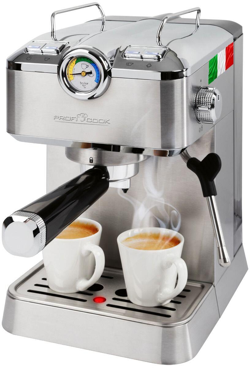 ProfiCook PC-ES-KA 1267 Espresso-Kaffeemaschine, 1100 W, 20 bar, 1,5 Wassertank, Edelstahl (501267)