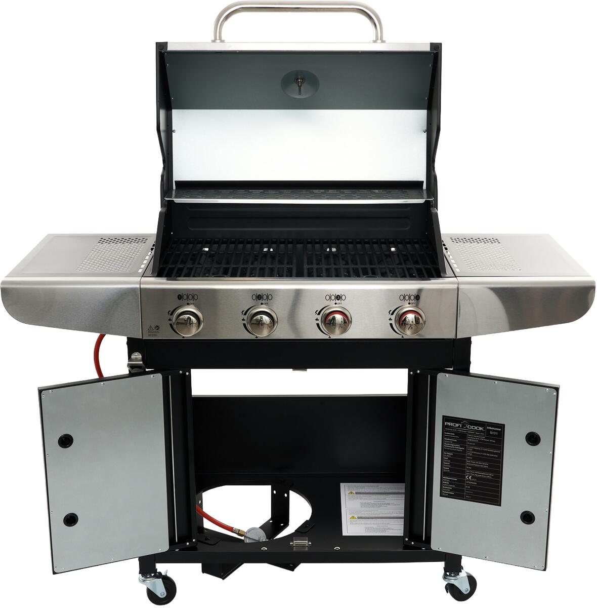 ProfiCook PC-GG 1311 Gasgrill, 4 Heizzonen, 67 x 43 cm große Grillfläche, Edelstahl (501311)