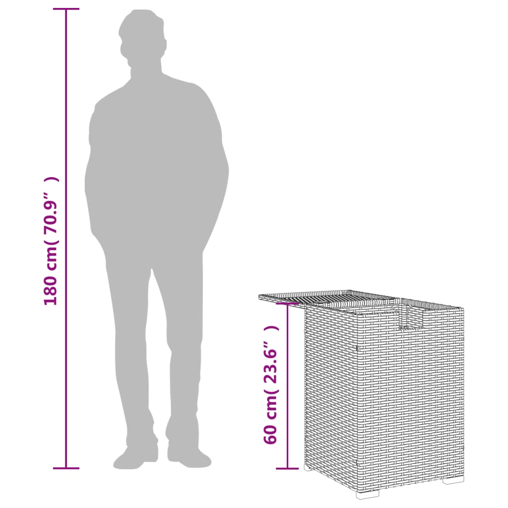 Gestalte deinen Außenbereich schöner mit diesem Propan-Tank-Abdeckungstisch! Langlebiges Material: PE-Rattan, auch als Poly Rattan bekannt, ist ein robustes, pflegeleichtes synthetisches Material, das die Optik von natürlichem Rattan aufweist. Es kennzeichnet sich durch ein geringes Eigengewicht und lässt sich einfach reinigen. Aufgrund seiner Haltbarkeit und Witterungsbeständigkeit wird es häufig bei der Herstellung von Gartenmöbeln verwendet.Verstecktes Staufach: Dieser Verstecktisch ist für 9 kg schwere Standard-Propantanks bestimmt. Er wertet deinen Außenbereich auf und gewährleistet gleichzeitig die Sicherheit von Kindern.Praktischer Zugang: Der Klappdeckel und die Schlauchöffnung ermöglichen einen einfachen Zugang zu deinem Gastank.Vielseitige Funktionalität: Dieses Möbelstück erfüllt einen doppelten Zweck: Es dient als Verkleidung für den Propantank und als praktischer Beistelltisch, auf dem du verschiedene Alltagssachen griffbereit halten kannst.Robuster und stabiler Rahmen: Dank des pulverbeschichteten Stahlrahmens ist das Möbelstück robust, stabil und für den täglichen Einsatz im Außenbereich geeignet. Gut zu wissen:Wir empfehlen dir, deine Gartenmöbel mit einer wasserdichten Hülle zu schützen, um lange Zeit eine ansprechende Optik aufzuweisen.