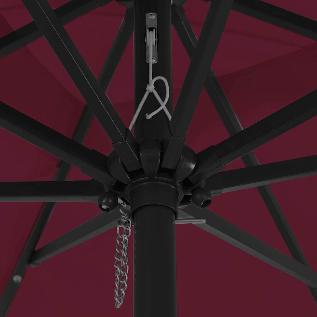 Der groe burgunderrote Terrassenschirm ist ein Must-Have fr alle, die einen gemtlichen Auenbereich zum Entspannen wollen. Er hat einen Durchmesser von 300 cm und spendet viel Schatten perfekt fr Outdoor-Essen oder einfach zum Relaxen am Pool. Hergestellt aus hochwertigem Polyester und Metall, ist er super robust und hlt dem Wetter stand, sodass du ihn den ganzen Sommer ber nutzen kannst. Ob Gartenparty oder einfach nur ein sonniger Tag, das moderne Design mit mattem Finish passt zu jeder modernen Gartenmbel. So bist du den ganzen Sommer ber stylisch geschtzt.