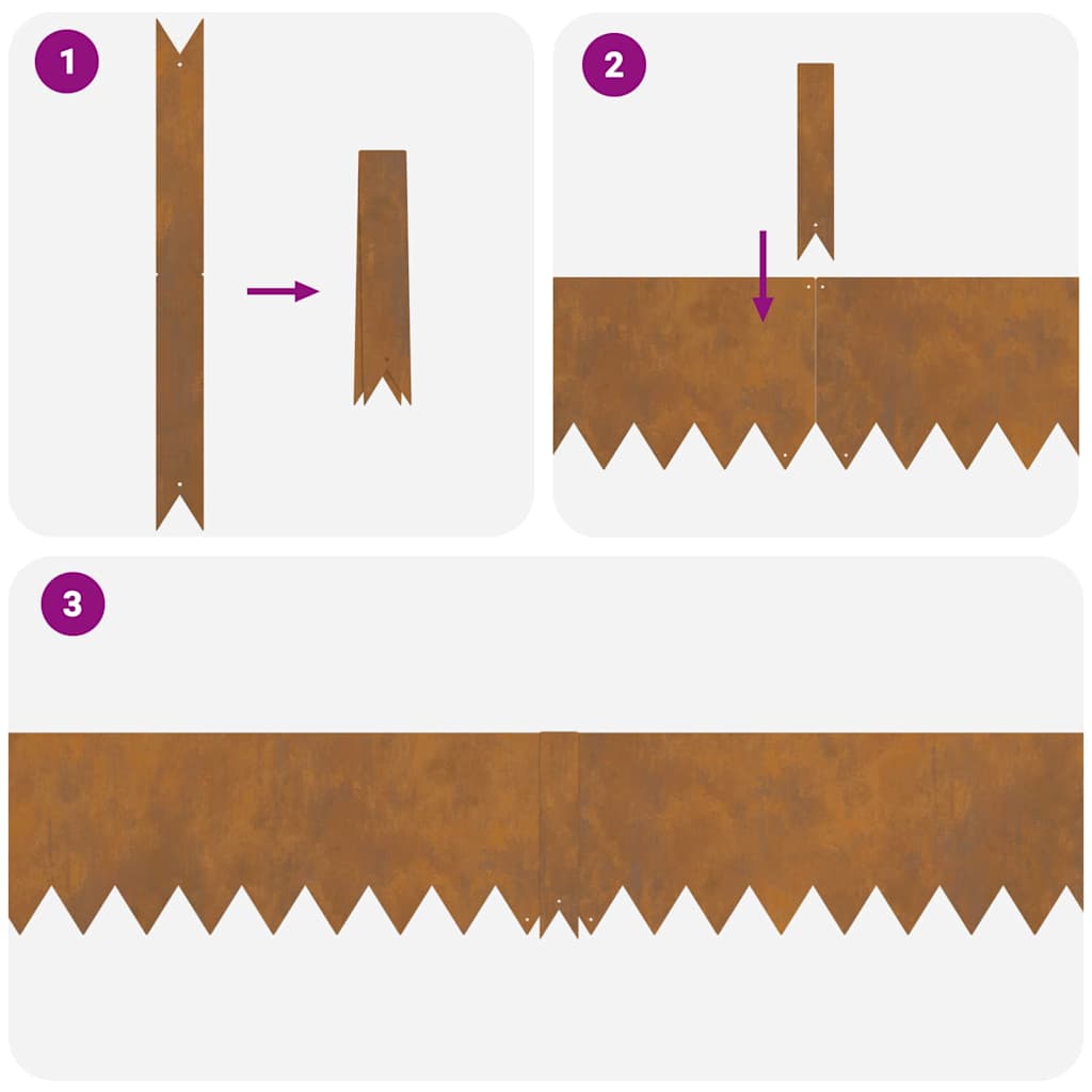 Das Set mit den Gartenbegrenzungen aus verwittertem Stahl macht deinen Garten nicht nur robust, sondern auch stylisch. Mit 50 Teilen ist es perfekt fr Einsteiger und Profis, die ihren Auenbereich aufpeppen wollen. Hergestellt aus verwittertem Stahl, hat es einen rustikalen Touch und hlt jedem Wetter stand. Es passt charmant zu jedem Gartenstil. Nutze diese Begrenzungen, um deine Blumenbeete, Gemseflchen oder Wege ordentlich abzugrenzen und deinem Raum ein ansprechendes, persnliches Aussehen zu geben.