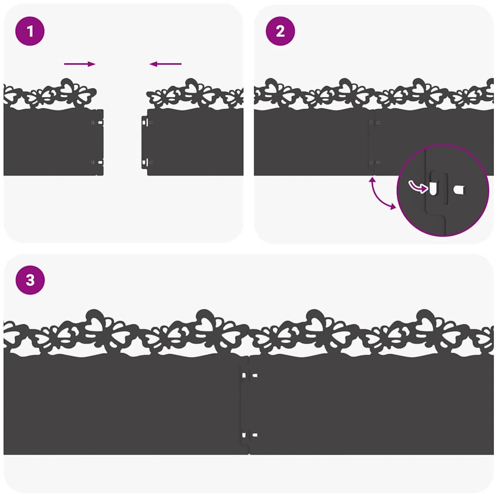 Unsere schicke Metallrasenkante bietet eine coole Lösung, um Gartenbeete und Wege abzugrenzen und passt super in traditionelle sowie moderne Gartenstile. Mit ihren klaren Linien und dem minimalistischen Design verbessert sie die Gestaltung deines Gartens und deiner Terrasse. Bring Struktur in deinen Außenbereich und ergänze deine Gartendeko um ein architektonisches Element. Perfekt für alle, die einfache Designs mögen und eine einladende Gartenatmosphäre schaffen wollen! Robuste Materialien Diese Metallrasenkanten wurden aus starkem Material gefertigt, um im Freien bestens abzuschneiden. Sie sind resistent gegen Wetterwechsel, egal ob Sonne, Regen oder Sturm, und garantieren dir eine lange Lebensdauer. Moderner Stil Schlichte Eleganz ist hier das Motto! Diese Kante passt perfekt in dein modernes Gartenambiente und lässt sich gut kombinieren mit vielen Möbeln und Dekorationen. Praktische Funktionalität Sie trennt Rasen und Blumenbeete oder Wege klar voneinander und sorgt dafür, dass alles ordentlich aussieht. Einfach in der Pflege ? so bleibt dein Garten immer schön strukturiert. Einfache Installation Denk dran: Du brauchst zwei Leute und einen Schraubendreher für den Aufbau. So kriegst du schnelle, professionelle Ergebnisse, ohne einen Experten hinzuzuziehen. Pflegeanleitung Halte deine Kante frisch, indem du sie mit einem feuchten Tuch abwischst. Diese einfache Pflege sorgt dafür, dass alles das ganze Jahr über super aussieht!
