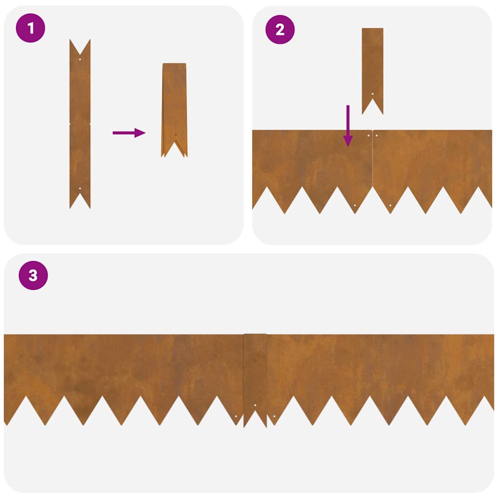 Der rustikale Gartenrand aus verwittertem Stahl ist ein echtes Must-Have fr alle Gartenliebhaber, die Funktionalitt und Style kombinieren wollen. Er eignet sich super, um klare Grenzen in deinem Garten zu setzen und sorgt fr einen ordentlichen, ansprechenden Look. Der robuste, wetterfeste Stahl hlt problemlos starkem Regen und Sonneneinstrahlung stand. Die dekorativen Elemente geben deinem Garten den besonderen Touch, egal ob du Blumenbeete hervorheben oder Wege einfassen mchtest. Die Montage ist kinderleicht mit nur einem Bohrer und Schraubendreher, perfekt fr alle vom Hobbygrtner bis zum Profi, und wertet jedes Auenprojekt auf. Mit den Maen von 100 x 0,5 x 15 cm passt er super zu verschiedenen Gartenstilen und hlt Erde und Pflanzen an Ort und Stelle. Hol dir rustikalen Charme und geniee einen gepflegten Garten.