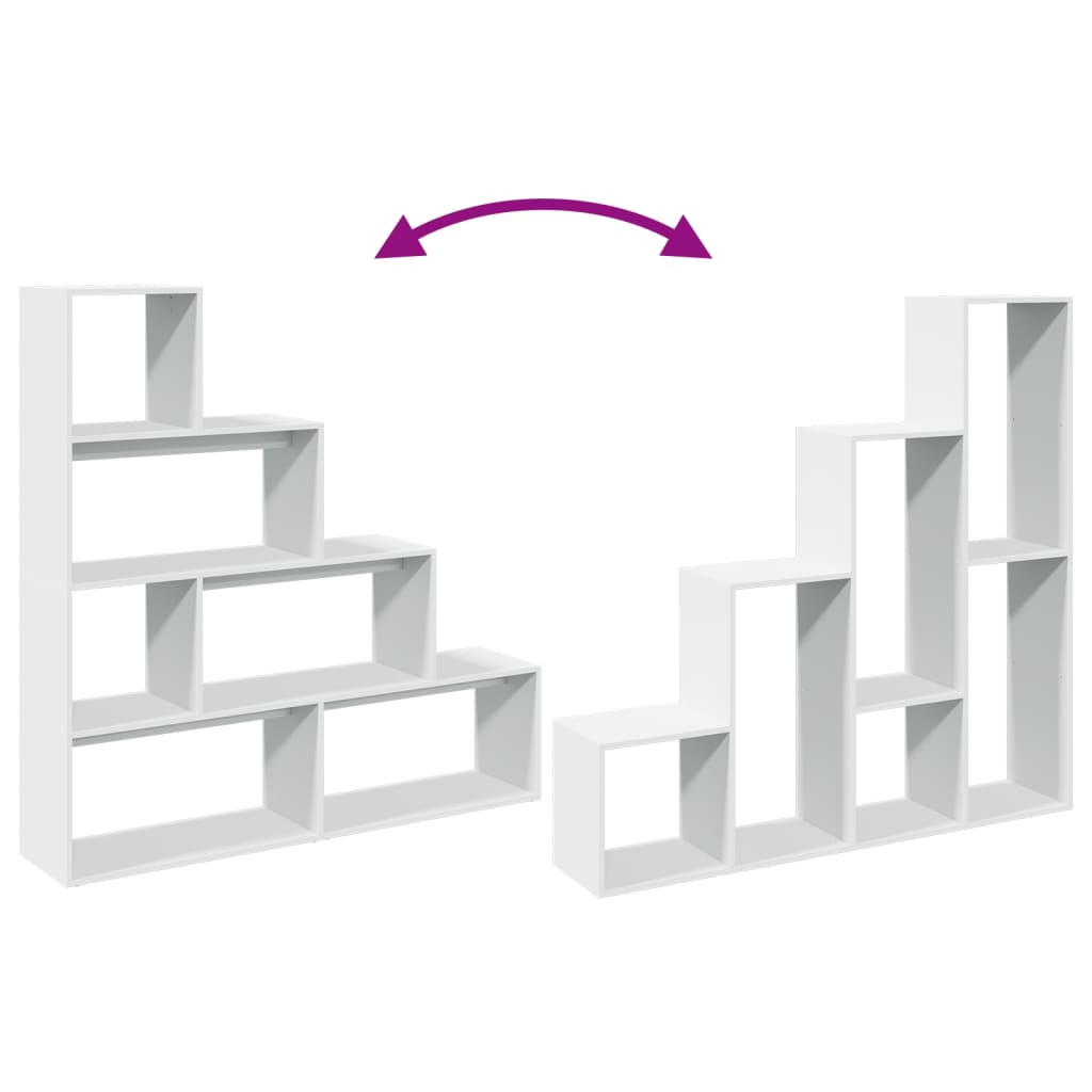 Es ist ein 4-Etagen-Bücherregal und Raumteiler zugleich. Dieses Möbelstück ist perfekt, um deinen Wohnraum mit Stil zu organisieren!Starkes und langlebiges Material: Holzwerkstoff ist ein langlebiges und robustes Material mit einer glatten Oberfläche, das gegen Feuchtigkeit, Verformung und Rissbildung beständig ist; dadurch ist es eine zuverlässige Wahl für die Herstellung von Möbeln.Reichlich Stauraum: Das Bücherregal verfügt über Staufächer, in denen sich Bücher, Dekoartikel und andere Sachen ordentlich aufbewahren lassen.Flexible Aufstellungsmöglichkeiten: Das Regal kann sowohl in der Breite als auch in der Höhe auf den Boden gestellt werden und bietet so vielfältige Möglichkeiten der Raumgestaltung.Vielseitig einsetzbar: Das Regal kann auch als Raumteiler verwendet werden und passt problemlos zu jedem Einrichtungsstil. Es findet Platz im Wohnzimmer, um Dekoartikel zur Schau zu stellen, im Büro, um Bücher und Unterlagen zu verstauen, im Schlafzimmer, um Alltagssachen aufzubewahren, oder im Keller, um Haushaltssachen zu lagern.Pflegeleicht: Dank seiner glatten Oberfläche lässt sich der Bücherregal-Raumteiler mit einem feuchten Tuch leicht reinigen und erfordert wenig Pflege.Achtung:Um ein Umkippen zu vermeiden, sollte dieses Produkt mit der mitgelieferten Wandhalterung gesichert werden.Gut zu wissen:Schrauben und Dübel sind für die Befestigung an der Wand nicht im Lieferumfang enthalten. Wir empfehlen dir, speziell für deine Wände geeignete Schrauben und Dübel zu finden und zu verwenden. Im Zweifelsfall wende dich an einen Fachmann. Bitte lese und befolge jeden Schritt der Anweisungen.