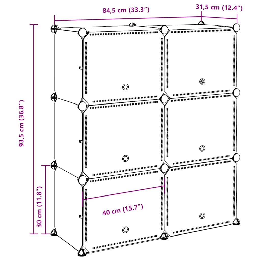 Dieses vielseitige Würfelregal ist dazu gedacht, den begrenzten Platz optimal zu nutzen und deine verschiedenen Aufbewahrungsbedürfnisse zu befriedigen. Stabil und langlebig: Das Regalsystem ist aus Polypropylen-Kunststoff gefertigt, einem vielseitigen Material, das für sein geringes Gewicht, seine Langlebigkeit und seine einfache Reinigung bekannt ist. Es ist außerdem chemikalien-, wasser- und korrosionsbeständig und eignet sich daher für verschiedene Anwendungen.Viel Stauraum: Jeder Würfel ist mit einer Trennplatte ausgestattet, die zwei Fächer pro Würfel schafft. Die vielen Fächer bieten viel Platz für Kleidung, Schuhe und Accessoires, aber auch für Bücher, Alltagsgegenstände und Büromaterial.Schnell auf- und abgebaut: Der Aufbewahrungs-Organizer ist mit Verbindungselementen ausgestattet, die einen schnellen Auf- und Abbau ermöglichen, sodass du im Handumdrehen deinen eigenen individuellen Aufbewahrungsschrank erstellen kannst. Bei Nichtgebrauch lassen sich die Paneele leicht trennen und platzsparend stapeln.Pflegeleicht: Dank seiner glatten Oberfläche lässt sich das Regal mit einem feuchten Tuch leicht reinigen und erfordert wenig Pflege.