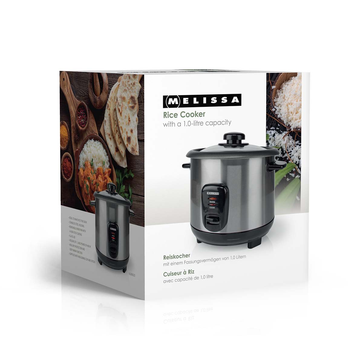 Der Melissa Reiskocher ist langlebig und verfügt über ein robustes Edelstahlgehäuse und einen transparenten Glasdeckel, so dass Sie Ihr Essen im Auge behalten können, ohne den Deckel anheben zu müssen und Hitze freizusetzen. Auch die Sicherheit hat Priorität: Der integrierte Trockengehschutz schaltet den Kocher automatisch ab, wenn kein Wasser mehr vorhanden ist.