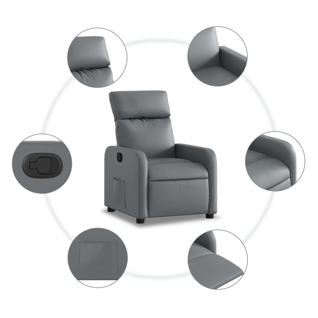 Lehne sich zurück und entspanne sich in diesem äußerst bequemen Relaxsessel! Manuelle Liegefunktion: Dieser Ruhesessel lässt sich mittels des Griffs an der rechten Seite verstellen. So kannst du das Fußteil und die Rückenlehne manuell in jede beliebige Position bringen, um höchsten Komfort zu genießen. Die Rückenlehne lässt sich max. 135 Grad nach hinten verstellen. Durch einfaches Ziehen lässt sie sich schnell wieder in die ursprüngliche Position bringen.Bequemes Sitzerlebnis: Die dick gepolsterte Sitzfläche, die Rückenlehne und die breiten, mit Kunstleder bezogenen Armlehnen sorgen für ein behagliches und angenehmes Sitzgefühl. Kunstleder ist ein äußerst langlebiges Material. Es ist schmutzabweisend und lässt sich mit einem feuchten Tuch einfach reinigen. Durch die glatte Oberfläche weist es die luxuriöse Schönheit von Echtleder auf.Praktische Seitentasche: Dieser Sessel verfügt über eine Seitentasche, in der du wichtige Sachen griffbereit aufbewahren kannst.Solider und stabiler Rahmen: Der Rahmen aus Holz und Metall sorgt für eine solide Struktur und hohe Stabilität. Dieser TV-Sessel ist bequem und langlebig.