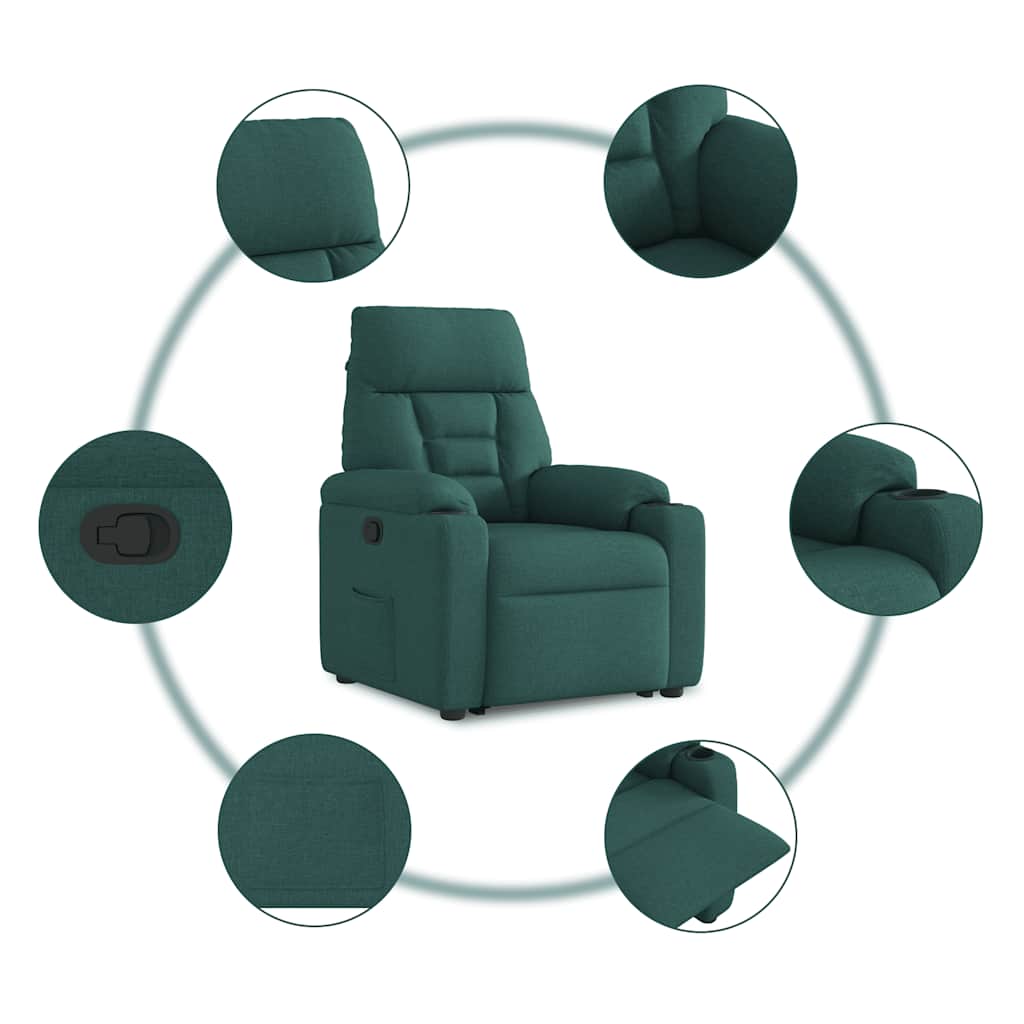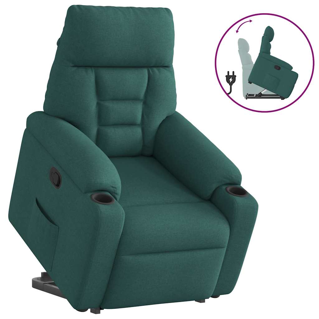 Lehne dich zurück und entspanne dich in diesem äußerst bequemen Relaxsessel mit Aufstehhilfe! Elektrische Aufstehhilfe: Dieser Relaxsessel ist mit einem Elektromotor zum Anheben ausgestattet. Dank der Aufstehhilfe, die den gesamten Sessel nach oben bringt, kannst du ganz einfach auf Knopfdruck aufstehen, ohne deinen Rücken und deine Knie zu belasten.Manuelle Liegefunktion: Dieser Ruhesessel lässt sich mittels des Griffs an der rechten Seite verstellen. So kannst du das Fußteil und die Rückenlehne manuell in jede beliebige Position bringen, um höchsten Komfort zu genießen. Die Rückenlehne lässt sich max. 135 Grad nach hinten verstellen. Durch einfaches Ziehen lässt sie sich schnell wieder in die ursprüngliche Position bringen.Bequemes Sitzerlebnis: Die dick gepolsterte Sitzfläche, die Rückenlehne und die breiten Armlehnen sorgen für ein behagliches und wohliges Sitzgefühl. Der Bezug aus Stoff weist eine schlichte und saubere Optik auf und ist auch atmungsaktiv und langlebig.Praktische Getränkehalter und Seitentasche: Dieser Sessel verfügt über zwei praktische Getränkehalter und eine Seitentasche, in der du deine Fernbedienung oder andere wichtige Sachen griffbereit aufbewahren kannst.Solider und stabiler Rahmen: Der Rahmen aus Holz und Metall sorgt für eine solide Struktur und hohe Stabilität. Dieser TV-Sessel ist bequem und langlebig.