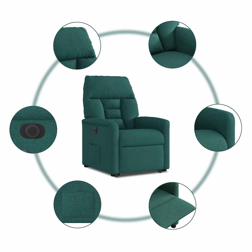 Lehne dich zurück und entspanne dich in diesem äußerst bequemen elektrischen Relaxsessel mit Aufstehhilfe! Elektrische Aufstehhilfe: Dieser Relaxsessel ist mit einem Elektromotor zum Anheben ausgestattet. Dank der Aufstehhilfe, die den gesamten Sessel nach oben bringt, kannst du ganz einfach auf Knopfdruck aufstehen, ohne deinen Rücken und deine Knie zu belasten.Elektrische Liegefunktion: Dieser Relaxsessel ist mit einem Elektromotor ausgestattet, der Fußstütze und Rückenlehne durch einfaches Drücken des seitlichen Knopfes automatisch in jede gewünschte Position bringt. Diese Funktion ermöglicht eine maximale Neigung von 135 Grad. Darüber hinaus lässt sich die Rückenlehne auf Knopfdruck automatisch in die ursprünglichen Position zurückbringen.Bequemes Sitzerlebnis: Die dick gepolsterte Sitzfläche, die Rückenlehne und die breiten Armlehnen sorgen für ein behagliches und wohliges Sitzgefühl. Der Bezug aus Stoff weist eine schlichte und saubere Optik auf und ist auch atmungsaktiv und langlebig.Praktische Getränkehalter und Seitentasche: Dieser Sessel verfügt über zwei praktische Getränkehalter und eine Seitentasche, in der du deine Fernbedienung oder andere wichtige Sachen griffbereit aufbewahren kannst.Solider und stabiler Rahmen: Der Rahmen aus Holz und Metall sorgt für eine solide Struktur und hohe Stabilität. Dieser TV-Sessel ist bequem und langlebig.