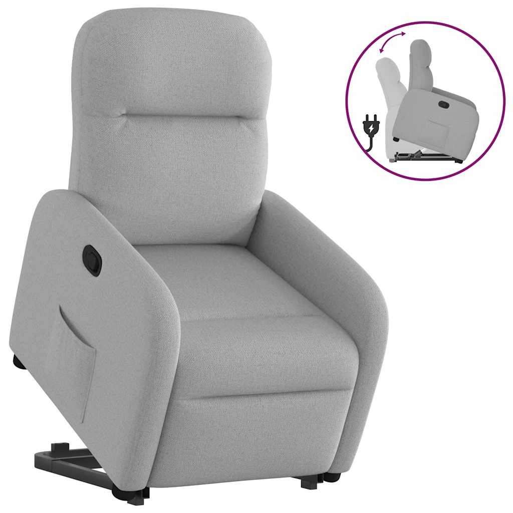 Lehne dich zurück und entspanne dich in diesem äußerst bequemen Relaxsessel mit Aufstehhilfe! Elektrische Aufstehhilfe: Dieser Relaxsessel ist mit einem Elektromotor zum Anheben ausgestattet. Dank der Aufstehhilfe, die den gesamten Sessel nach oben bringt, kannst du ganz einfach auf Knopfdruck aufstehen, ohne deinen Rücken und deine Knie zu belasten.Manuelle Liegefunktion: Dieser Ruhesessel lässt sich mittels des Griffs an der rechten Seite verstellen. So kannst du das Fußteil und die Rückenlehne manuell in jede beliebige Position bringen, um höchsten Komfort zu genießen. Die Rückenlehne lässt sich max. 135 Grad nach hinten verstellen. Durch einfaches Ziehen lässt sie sich schnell wieder in die ursprüngliche Position bringen.Bequemes Sitzerlebnis: Die dick gepolsterte Sitzfläche, die Rückenlehne und die breiten Armlehnen sorgen für ein behagliches und wohliges Sitzgefühl. Der Bezug aus Stoff weist eine schlichte und saubere Optik auf und ist auch atmungsaktiv und langlebig.Praktische Seitentasche: Dieser Sessel verfügt über eine Seitentasche, in der du wichtige Sachen griffbereit aufbewahren kannst.Solider und stabiler Rahmen: Der Rahmen aus Holz und Metall sorgt für eine solide Struktur und hohe Stabilität. Dieser TV-Sessel ist bequem und langlebig.