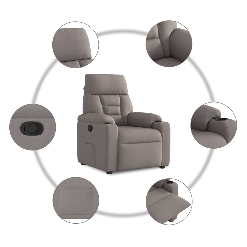 Lehne sich zurück und entspanne sich in diesem äußerst bequemen Relaxsessel! Manuelle Liegefunktion: Dieser Ruhesessel lässt sich mittels des Griffs an der rechten Seite verstellen. So kannst du das Fußteil und die Rückenlehne manuell in jede beliebige Position bringen, um höchsten Komfort zu genießen. Die Rückenlehne lässt sich max. 135 Grad nach hinten verstellen. Durch einfaches Ziehen lässt sie sich schnell wieder in die ursprüngliche Position bringen.Bequemes Sitzerlebnis: Die dick gepolsterte Sitzfläche, die Rückenlehne und die breiten Armlehnen sorgen für ein behagliches und wohliges Sitzgefühl. Der Bezug aus Stoff weist eine schlichte und saubere Optik auf und ist auch atmungsaktiv und langlebig.Praktische Getränkehalter und Seitentasche: Dieser Sessel verfügt über zwei praktische Getränkehalter und eine Seitentasche, in der du deine Fernbedienung oder andere wichtige Sachen griffbereit aufbewahren kannst.Solider und stabiler Rahmen: Der Rahmen aus Holz und Metall sorgt für eine solide Struktur und hohe Stabilität. Dieser TV-Sessel ist bequem und langlebig.