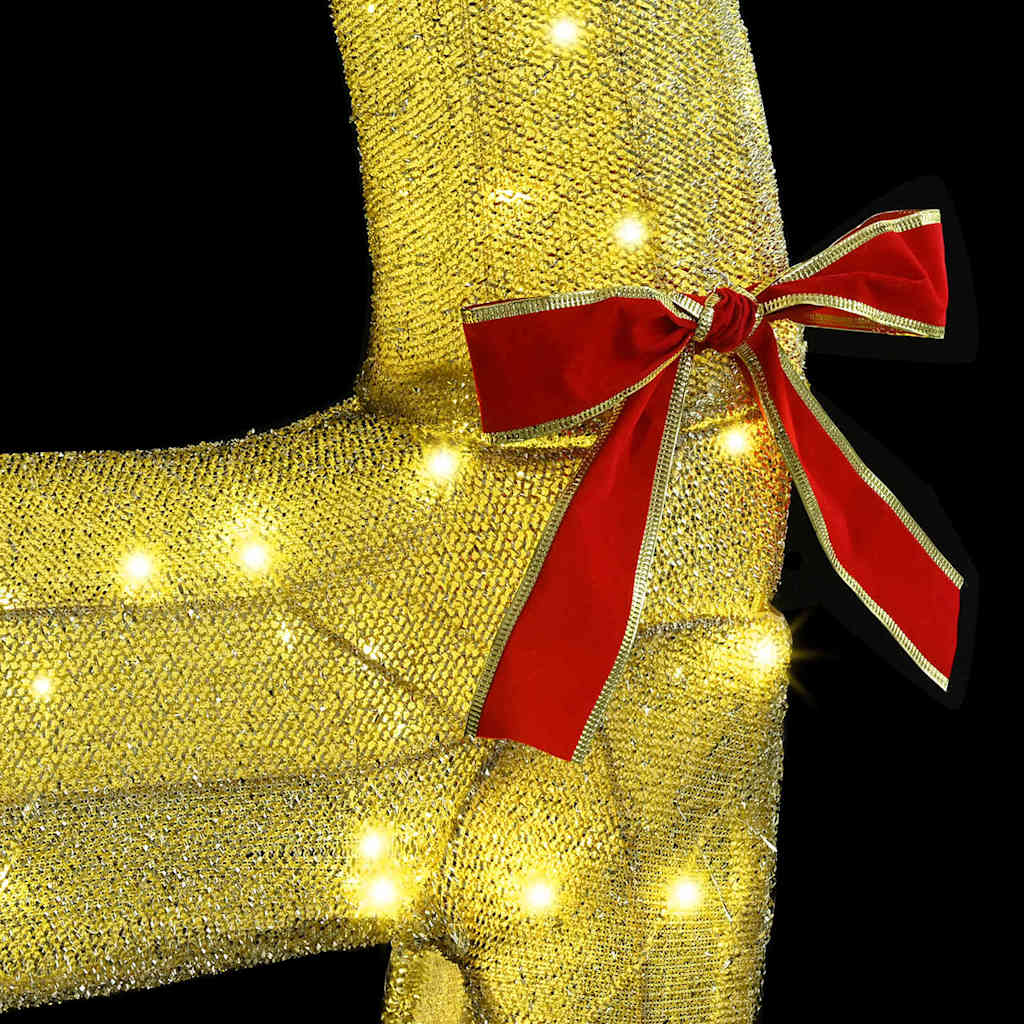 Dieser Rentier-Zugschlitten ist die perfekte Ergänzung für jede feierliche Umgebung. Er kombiniert modernes Design mit dem zeitlosen Charme von Weihnachten. Für alle, die den Weihnachtszauber lieben, bringt dieses auffällige Deko-Element Charakter und Wärme in jedes Zimmer, sei es Wohnzimmer, Flur oder Garten. Mit einem niedlichen Rentier, das einen Schlitten zieht, fängt es die Freude und Staunen der Feiertage perfekt ein. Die warm-weißen LED-Lichter strahlen sanft und harmonieren sowohl drinnen als auch draußen, während sie gleichzeitig Eleganz und festliche Stimmung zeigen. Ihr schlanker, moderner Stil ergänzt verschiedene Feiertagsthemen und bringt dabei einen zeitgemäßen Twist. Top Qualität: Mit flexiblen LED-Lichtern sorgt dieser Rentierschlitten für eine gemütliche Atmosphäre. Der warm-weiße Lichtton macht es perfekt für einladende Innenräume oder um Außendekorationen zu verschönern. Praktischer USB-Anschluss: Dank des eingebauten USB-Anschlusses ist die Stromversorgung dieser Figur einfach und flexibel. Damit kannst du sie nahe einer Steckdose oder einem anderen Ort platzieren, so wie es für dich am besten passt. Stylisches Design: Ihr modernes Design mit klaren Linien fügt sich spielend leicht in jede zeitgenössische Umgebung ein. Es kombiniert den traditionellen Feiertagscharme mit einem modernen Look. Platzsparend: Mit 54 x 19 x 120 cm passt sie super in verschiedene Bereiche, ohne überladen zu wirken, perfekt für alle, die den Platz optimal nutzen möchten. DIY-freundlich: Bastler werden die Möglichkeit lieben, diese Deko selbst zusammenzubauen und so eine persönliche Note in die Ausgestaltung zu bringen. Alle notwendigen Teile für einen reibungslosen Aufbau sind enthalten.