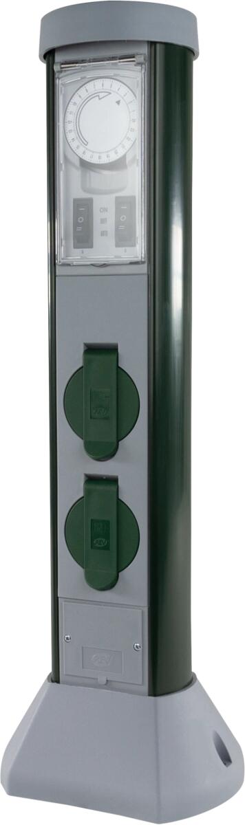 Die GreenCraft 2-fach Steckdose mit Zeitschaltuhr ist die ideale Lösung für Ihre Stromversorgung im Garten oder auf der Terrasse. Mit ihrem robusten und witterungsbeständigen Gehäuse aus Spezialkunststoff ist sie perfekt für den dauerhaften Einsatz im Freien geeignet. Ob beim Rasenmähen, Hecken schneiden oder für Ihre Gartenbeleuchtung ? die Steckdose liefert zuverlässig Strom genau dort, wo Sie ihn benötigen. Dank der integrierten Zeitschaltuhr können Sie Ihre angeschlossenen Geräte zeitlich automatisch steuern. Die verschiedenen Befestigungsmöglichkeiten bieten Ihnen Flexibilität bei der Installation: Ob Anschrauben auf der Holzterrasse, Einstecken im Beet oder Befestigen in weichem Untergrund ? die GreenCraft Steckdose passt sich Ihren Bedürfnissen an. Die 5 m lange Gummileitung ermöglicht einen einfachen Anschluss an eine übliche Steckdose oder eine Festinstallation an ein Erdkabel.