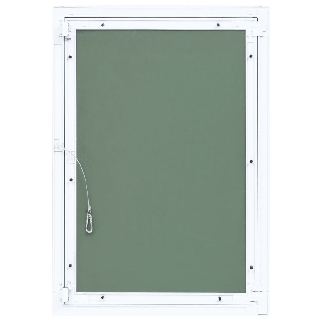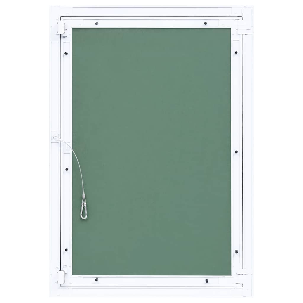 Diese Revisionsklappe mit Alurahmen ermöglicht einen einfachen Zugang zu Revisionsöffnungen in Wänden und Decken sowie zu Hohlräumen mit Gas-, Wasser- und Stromzählern oder hausinternen Feuerlöschanschlüssen usw. Die große Revisionstür mit grüner GK-Einlage ist für Räume mit größeren Verteilerstationen wie Heizungsverteiler aber auch für Hohlräume in Decken geeignet. Die Wartungsklappe ist mit Federverschluss ausgestattet, wodurch eine grifflose Oberfläche zum Öffnen der Klappe entsteht. Dazu einfach auf die längere Kante des zu öffnenden Teils drücken.