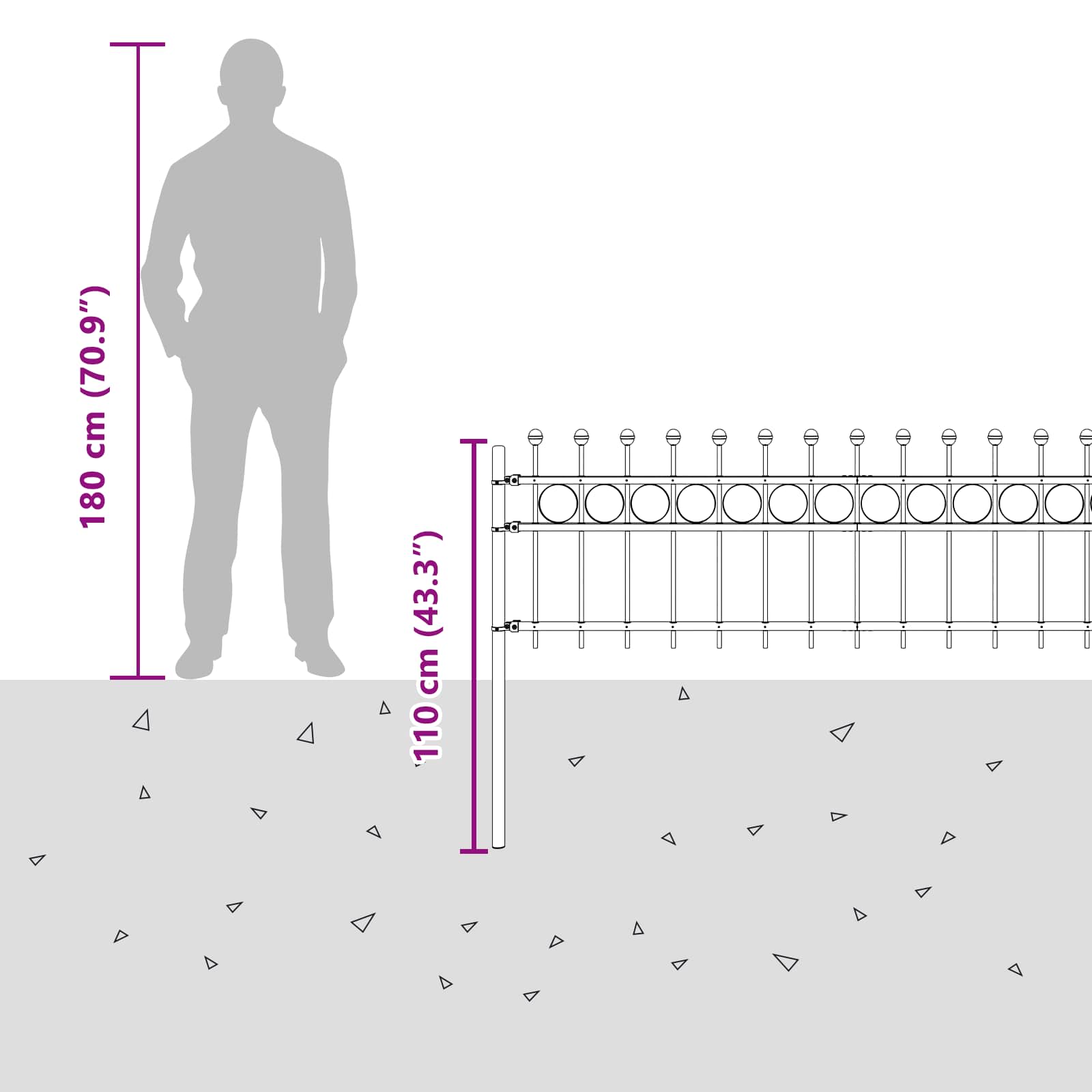 Dieser moderne Ringzaun ist ein Must-have für jeden, der seinen Außenbereich aufwerten will. Er sieht nicht nur cool aus, sondern ist auch praktisch. Die rechteckige Form und die klaren Linien machen ihn stylish und funktional. Hergestellt aus robustem pulverbeschichtetem Stahl, ist er ideal für Hausbesitzer und Unternehmen, die mit einem Hauch von Eleganz arbeiten wollen und gleichzeitig wenig Wartung möchten. Pulverbeschichteter Stahl: Aus starkem pulverbeschichtetem Stahl, hält der Ringzaun prima gegen Wetter und sieht dabei schick aus. Die glatte Oberfläche bleibt lange schön und passt in jede Umgebung. Verbindungszubehör: Mit praktischem Zubehör erlaubt er, die Winkel anzupassen. So lässt sich der Zaun super flexibel gestalten und passt in jeden Garten oder auf jede Terrasse. INEINANDERGREIFENDES PANELESYSTEM: Das smarte System macht die Montage wirklich einfach. Eine Person kann den Zaun ohne viel Aufwand aufbauen ? ein echter Zeit- und Kraftsparer! AUßENBESTÄNDIGKEIT: Er hält Wind und Wetter bestens aus. Der Ringzaun bleibt zuverlässig, auch bei Sonne und Regen, und sieht dabei top aus. EINFACHE PFLEGE: Den Zaun sauber zu halten ist super easy. Ein feuchtes Tuch reicht, um ihn frisch und ordentlich zu halten; scharfe Chemikalien braucht man dabei nicht.