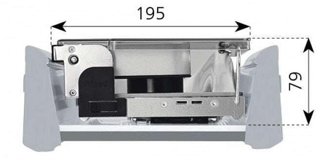 - Maße: Höhe 79 mm Breite 195 mm Tiefe 385 mm (geklappt, ohne Tablett)