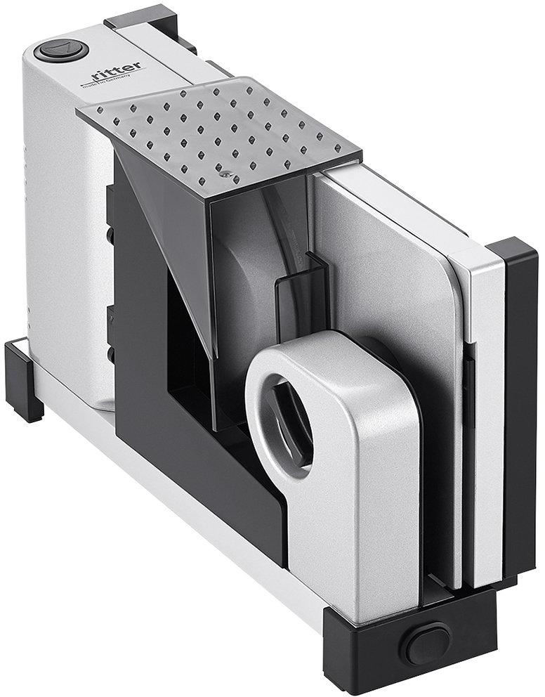 Der klappbare Vollmetall-Allesschneider icaro7von ritterwerk überzeugt mit seiner Funktion. Denn das Gerät kann nach Gebrauch platzsparend zusammengeklappt und praktisch verstaut werden. Auch in Gebrauch nimmt der Allesschneider wenig Platz auf der Arbeitsplatte in Anspruch.