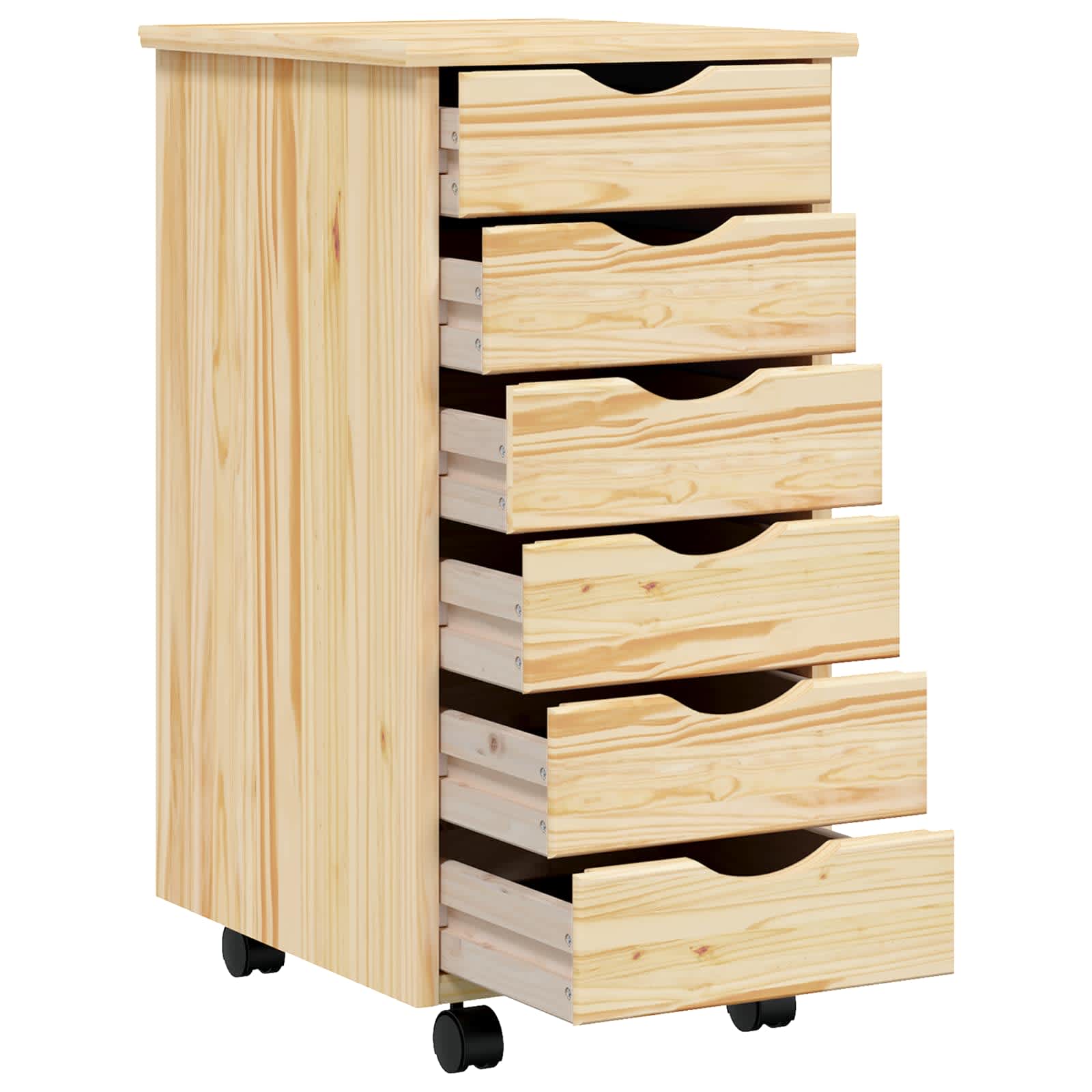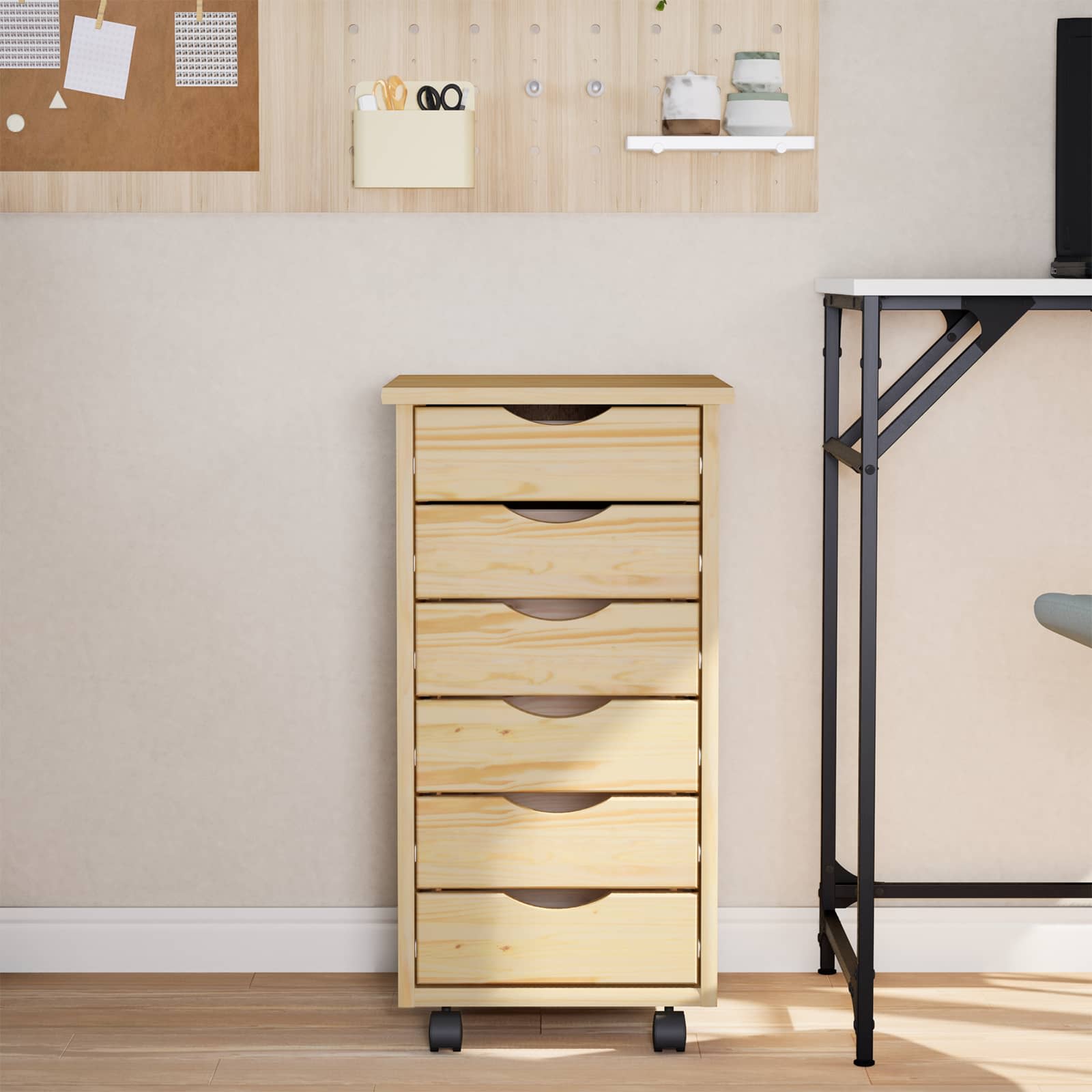 Der rollende Schrank mit Schubladen ist praktisch und sieht gut aus ? die ideale Lösung für deine Aufbewahrungsbedürfnisse im Zuhause oder Büro. Mit seinem modernen Design und den klaren Linien fügt er sich nahtlos in jedes Raumdekor ein. Egal, ob du im Wohnzimmer, Schlafzimmer oder Home-Office Ordnung schaffen möchtest, dieser Schrank bietet genügend Platz und hilft dir, alles schön ordentlich zu halten. Massivholz Kiefer: Der Schrank aus hochwertigem Kiefernholz ist super robust und hält lange ? Stärke und Eleganz in einem. Kantengriffe: Die schlichten Kantengriffe sorgen für ein minimalistisches Design und machen die Benutzung einfach. Vielseitige Rollen: Die praktischen Rollen bieten Mobilität ohne unnötiges Rutschen ? ideal für jede Umgebung. Geräumige Schubladen: Die vielen Schubladen sorgen dafür, dass du alles ordentlich verstauen kannst, von Büromaterial bis hin zu Kleidung. Montage: Einfacher Aufbau mit einem Schraubendreher ? zwei Personen reichen aus. Das macht den Zusammenbau schnell und unkompliziert.
