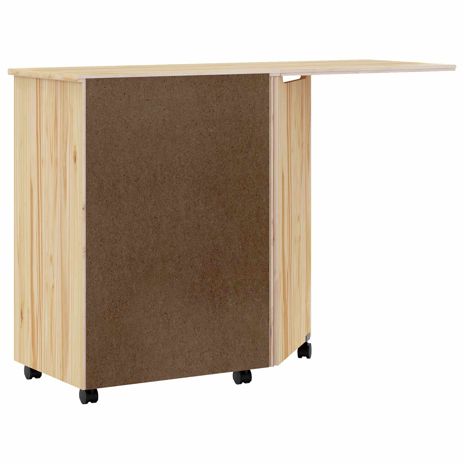 Dieser Rollschrank mit Schreibtisch bringt modernen Stil und Funktionalität zusammen und ist für multifunktionale Bedürfnisse gemacht. Durch das schlichte und praktische Design ist er die perfekte Ergänzung für jeden Wohn- oder Arbeitsraum. Dieses moderne Möbelstück ist ein vielseitiger Begleiter für alle, die effizient organisieren und arbeiten wollen. Die glatte rechteckige Form und das natürliche Kiefernholz verleihen eine frische Atmosphäre, die jeden Raum aufwertet. Moderne Einfachheit: Mit seinem klaren Design strahlt der Rollschrank mit Schreibtisch Funktionalität und Eleganz aus. Die einfachen Linien und das Fehlen von zu viel Schnickschnack machen ihn zu einer praktischen und gleichzeitig ansprechenden Ergänzung in jedem Raum. Das moderne Aussehen passt zu jedem zeitgenössischen Interieur. Robustes Material: Dieser Schrank ist aus massiven Kiefernholz gefertigt und bietet Stabilität und Langlebigkeit. Die Materialwahl sorgt dafür, dass er auch bei häufigem Gebrauch lange hält, was ihn ideal für Büros oder Schlafzimmer macht. Integriertes Design: Dank der klappbaren Tischplatte ist dieser 2-in-1-Rollschrank platzsparend. Ob als Schreibtisch oder Stauraum genutzt, bietet er Funktionalität und Effizienz für alle, die ihren Platz optimal nutzen möchten. Praktische Eigenschaften: Mit seinen angebrachten Rädern lässt sich der Schrank mühelos bewegen. Das macht es einfacher für Leute, die oft die Anordnung ihrer Möbel ändern möchten, und erhöht die Flexibilität des Raumes. Einzigartige Aufbewahrungslösung: Die minimalistischen Kanten-Griffe ermöglichen einen einfachen Zugriff auf die gelagerten Gegenstände. Diese Griffe, die clever platziert sind, sorgen für einfache Handhabung und halten zugleich eine ordentliche Optik.