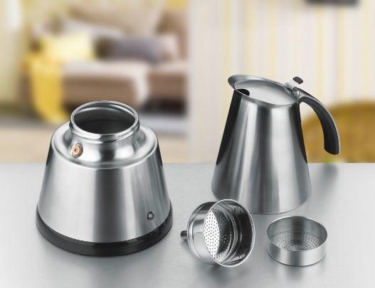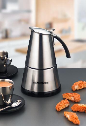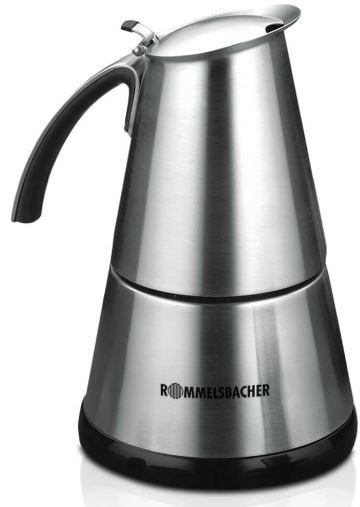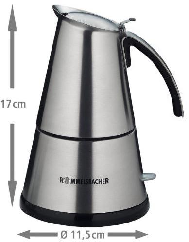 Wer genießt ihn nicht gerne ? den original italienischen Espresso. Für den etwas kleineren Kaffeedurst bietet der ROMMELSBACHER Espresso Kocher ElPresso mini beste Voraussetzungen. Optisch ein Blickfang: perfektes Design, geformt aus hochwertigem Edelstahl und ein ergonomisch geschwungener Edelstahl-Griff mit wärmeisolierendem Kunststoff auf der Innenseite. Ob nun 4 Tassen oder ? durch den im Lieferumfang enthaltenen Filtereinsatz ? nur 2 Tassen Espresso, die Bedienung ist einfach und bequem. Wasser und Espressopulver einfüllen, die cordless Kanne auf den Zentralsockel aufsetzen, einschalten und los geht?s. Sobald der Espresso fertig ist, schaltet sich das Gerät automatisch ab. Einfach perfekt!
