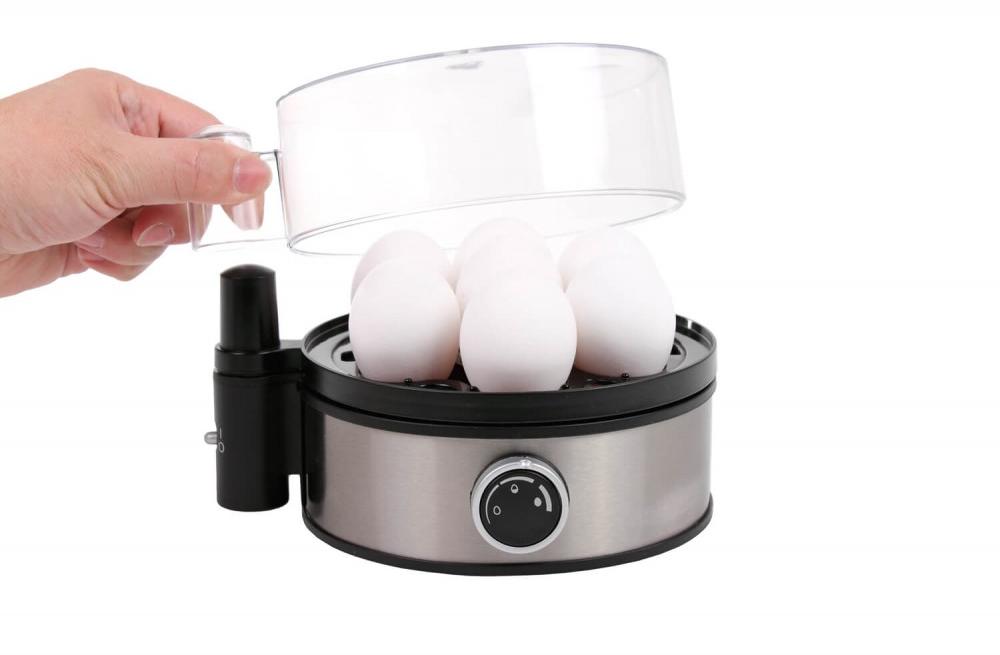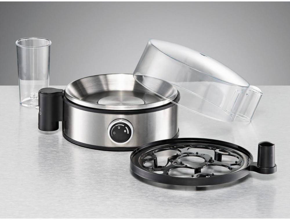 Die attraktive und clevere Lösung, leckere Eier für ein genussvolles Schlemmer-Frühstück zuzubereiten. Das einfache Bedienkonzept und die ausgezeichneten Kochergebnisse überzeugen! In einem Kochvorgang können bis zu 7 Eier zubereitet werden, dabei kann deren Härtegrad von weich bis hart individuell eingestellt werden. Die Kochzeit wird elektronisch gesteuert. Nach Ablauf ertönt ein Signalton und die Eier können schnell und sicher samt Eiereinsatz entnommen, abgeschreckt und serviert werden. Die pflegeleichte Heizschale aus Edelstahl und die praktische Kabelaufwicklung für nicht benötigtes Kabel sind weitere Pluspunkte dieses erstklassigen Küchenhelfers.