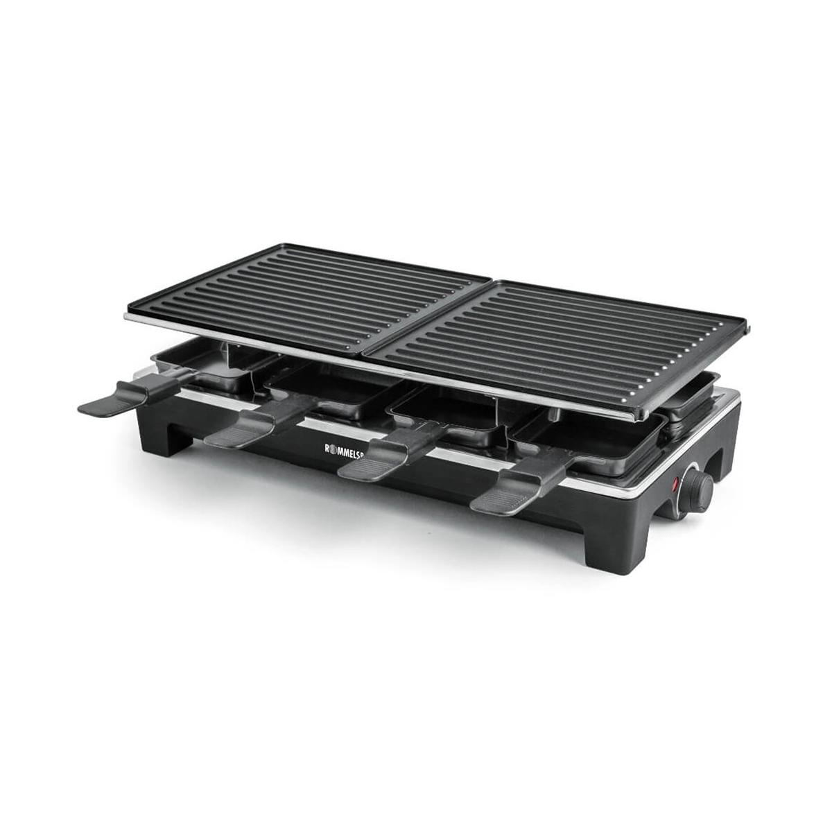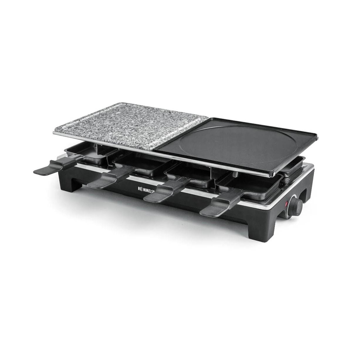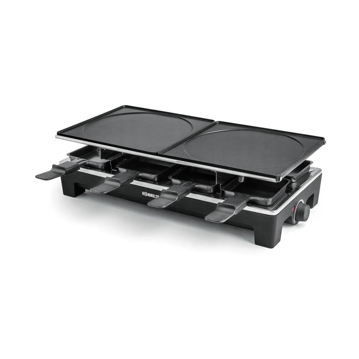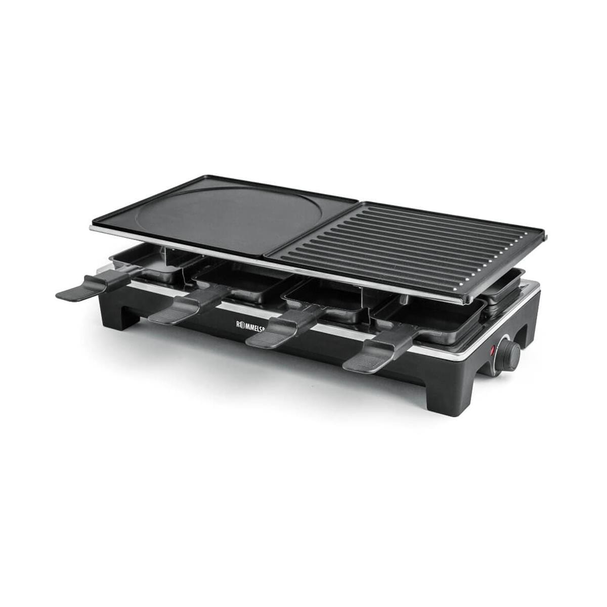 Rommelsbacher RCS 1350 Raclette, 1350W, 8 Pfännchen, 8 Wendeschaber, Antihaftbeschichtung, schwarz/Edelstahl