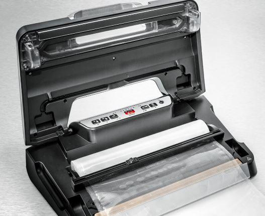 Dieser leistungsstarke Vakuumierer überzeugt auch den Profi. Mit dem komfortablen Handgriff lässt sich das Gerät ohne Kraftaufwand leicht öffnen und sicher schließen. Ob für den privaten Haushalt, Angler, Jäger oder im semiprofessionellen Einsatz in der Kleingastronomie - das Gerät ist flexibel einsetzbar. Der Vakuumierer für den Langzeitbetrieb geeignet, z. B. kann ein Großeinkauf ohne Zwischenpausen verarbeitet und die Ernte aus dem Garten zügig verpackt werden. Das integrierte Folienrollenfach mit Schneidevorrichtung hält die benötigte Spezialfolie bereit. Die leistungsstarke Pumpe saugt bis zu 97 % der Luft aus den speziellen Vakuumierbeuteln und versiegelt diese dann vollautomatisch mit einer stabilen Doppel-Naht in nur einem Arbeitsgang. Mit der in 2 Stufen einstellbaren Versiegelungsdauer und Pumpen-geschwindigkeit kann der Vakuumiervorgang individuell an die zu verarbeitenden Lebensmittel angepasst werden. Für besonders druckempfindliche Nahrungsmittel steht eine manuelle Absaug- und Versiegelungsfunktion zur Verfügung. Besonders praktisch ist das beleuchtete Sichtfenster, hier kann die korrekte Positionierung des Beutels im Gerät überprüft werden. Mit der Funktion ?Behälter vakuumieren? können selbst sensible und flüssige Lebensmittel in speziellen Vakuumiergefäßen vakuumverpackt und lange frisch gehalten werden. Durch Vakuumieren wird die Haltbarkeit von Lebensmitteln um das 3 bis 5-fache verlängert - darum sollte dieses praktische Gerät in keinem Haushalt fehlen!