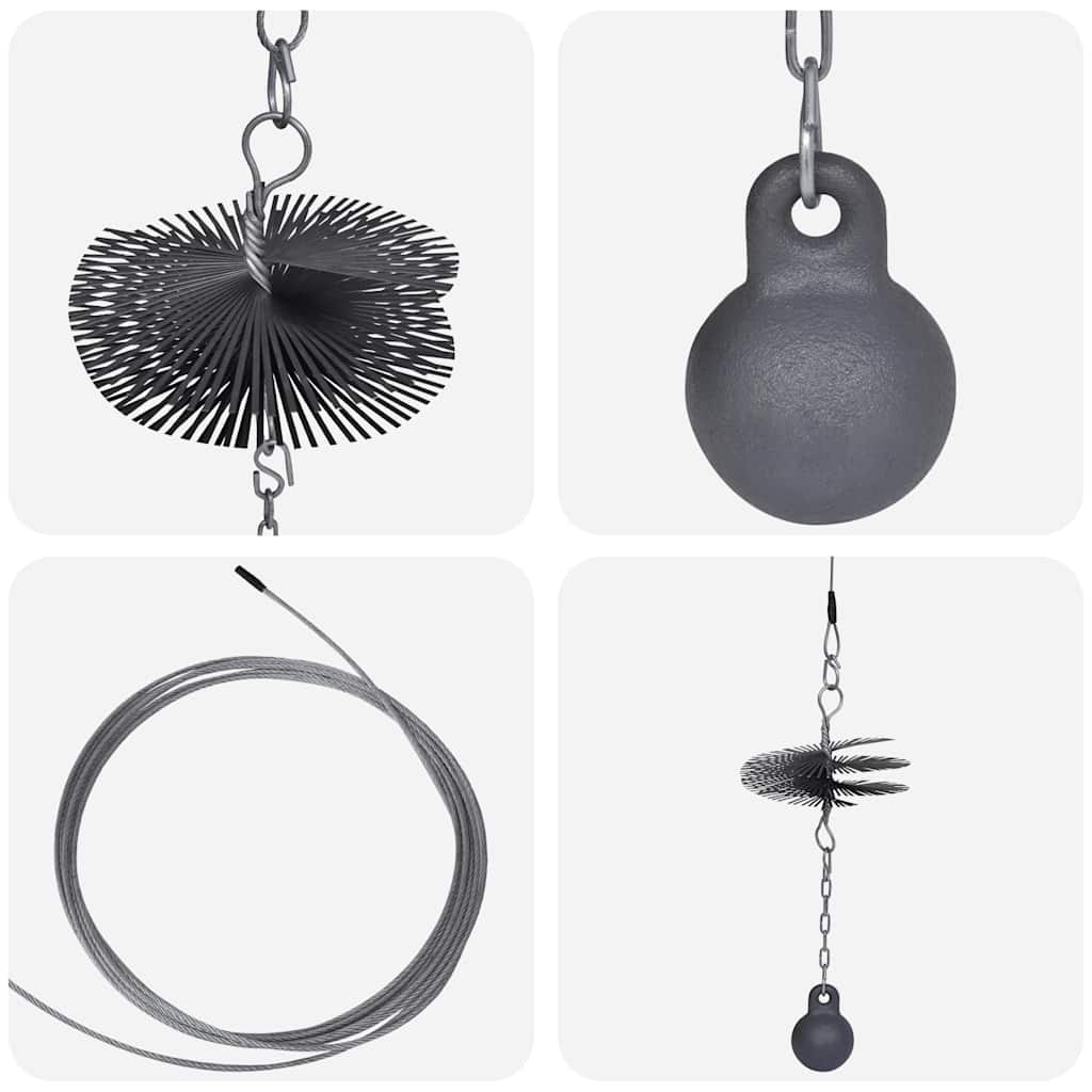 Diese Kaminreinigungsbürste eignet sich ideal zum Ruß entfernen. Dank des ergonomischen Designs kann die Bürste leicht en einen Drahtseil eingehackt werden, was ein leichtes Reinigen ermöglicht. Die hochwertigen Meterialien sorgen für eine lange Lebensdauer der Bürste. Lieferumfang: 1x Kaminreinigungsbürste, 1x Gewichtball an Kette, 1 x Drahtseil