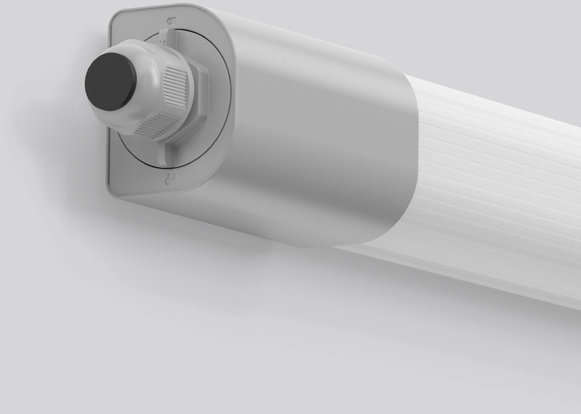 Feuchtraumleuchte mit schlanker und flacher Gehäuseform. Seitenteile Kunststoff (Polycarbonat) grau, schlagzäh. Diffusor aus Kunststoff (Polycarbonat) opal, schlagzäh. Diffusor extrudiert, innenprismatisch und UV-beständig. Lichtverteilung symmetrisch. Homogene Ausleuchtung. Rückwärtiger Lichtanteil zur Deckenaufhellung. Flexible Installation durch verschiebbare Montagebügel. Ideal bei Leuchtenaustausch. Deckenmontagebügel aus Edelstahl und Triangel-Bügel für Pendelmontage im Lieferumfang enthalten. Leuchte mit integrierter 4-poliger Durchgangsverdrahtung für das Aneinanderreihen von weiteren Leuchten. Komfortable Leitungseinführung über Kabelverschraubungen. Einfache Installation durch herausnehmbare Steckverbindung und Drehverschluss auf beiden Seiten. Austauschbare und herausnehmbare LED-Einheit mit integriertem Betriebsgerät. MultiLumen: Einstellbarkeit des Leuchtenlichtstroms in 2 Stufen. Werkseitig auf höchsten Leuchtenlichtstrom voreingestellt. Leuchte mit begrenzter Oberflächentemperatur nach DIN EN 60598-2-24 zur Verwendung in einer Umgebung, in der eine Ablagerung von leitfähigem Staub auf der Leuchte erwartet werden kann. Zugelassen für den Einsatz in der Lebensmittel- und Getränkeindustrie.