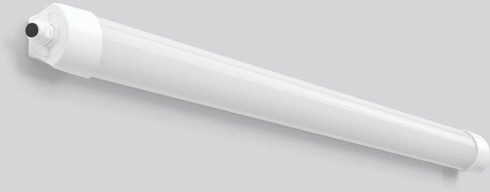 Designorientierte Feuchtraumleuchte. Seitenteile Kunststoff (Polycarbonat) weiß, schlagzäh. Diffusor aus Kunststoff (Polycarbonat) opal, schlagzäh. Diffusor extrudiert, innenprismatisch und UV-beständig. Lichtverteilung symmetrisch. Homogene Ausleuchtung. Rückwärtiger Lichtanteil zur Deckenaufhellung. Deckenmontagebügel aus Edelstahl und Triangel-Bügel für Pendelmontage im Lieferumfang enthalten. Betriebsgerät gekapselt, integriert und fest verbunden mit dem Diffusor und Seitenteil. Komfortable Leitungseinführung über Kabelverschraubungen. Einfache Installation durch Drehverschluss auf beiden Seiten. Leuchte mit integrierter Durchgangsverdrahtung für das Aneinanderreihen von weiteren Leuchten. MultiLumen: Einstellbarkeit des Leuchtenlichtstroms in 2 Stufen. Werkseitig auf höchsten Leuchtenlichtstrom voreingestellt. Leuchten mit begrenzter Oberflächentemperatur nach DIN EN 60598-2-24 zur Verwendung in einer Umgebung, in der eine Ablagerung von leitfähigem Staub auf der Leuchte erwartet werden kann. Zugelassen für den Einsatz in der Lebensmittel- und Getränkeindustrie.