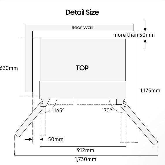 - Gerätemaße inkl. Türen mit Griff (B x H x T): 912 x 1780 x 726 mm
