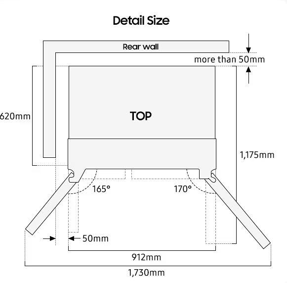 - Gerätemaße inkl. Türen ohne Griff (B x H x T): 912 x 1780 x 726 mm