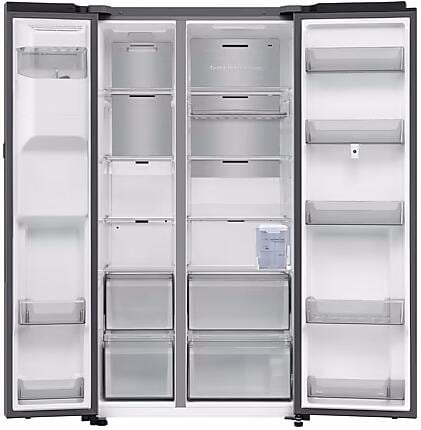 Erlebe die Zukunft des Kühlens mit dem RS97F Kühlschrank im eleganten Edelstahl Look. Dieser Kühlschrank bietet nicht nur ein beeindruckendes Gesamtvolumen von 614 Litern, sondern auch eine Vielzahl an innovativen Funktionen, die deinen Alltag erleichtern. Mit dem Family Hub bleibst du stets vernetzt und kannst deine Lebensmittel effizienter verwalten. Die No Frost+ Technologie sorgt dafür, dass du nie wieder abtauen musst, während die Smart Conversion? Funktion dir die Flexibilität gibt, den Kühl- und Gefrierbereich nach deinen Bedürfnissen zu nutzen. Dank der Digital Inverter Technologie profitierst du von einem leisen und effizienten Betrieb. Die Metal Cooling Funktion hält deine Lebensmittel länger frisch, indem sie die Kälte gleichmäßig verteilt. Mit dem integrierten Eis- und Wasserspender hast du jederzeit erfrischende Getränke zur Hand. Die WiFi-Fähigkeit ermöglicht es dir, den Kühlschrank bequem über die SmartThings App zu steuern und zu überwachen.