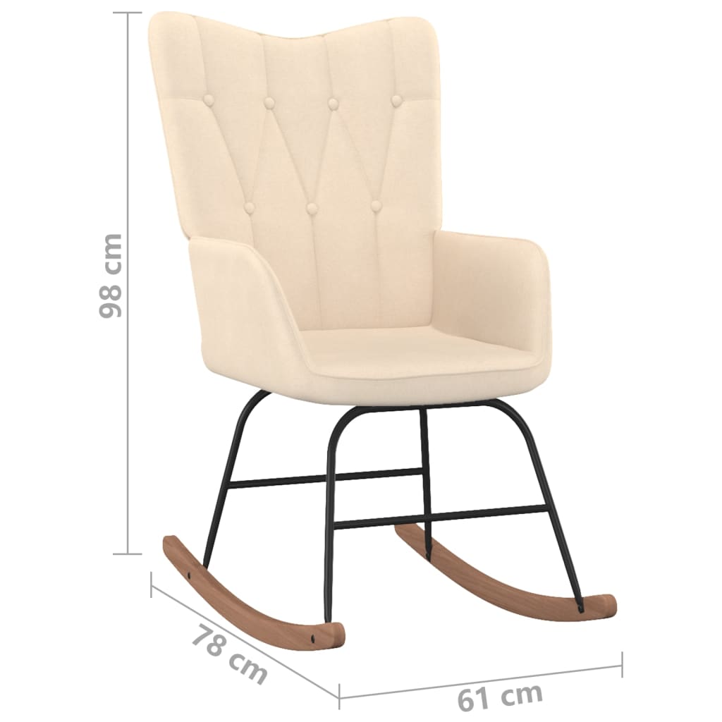 Mit seinem schicken und eleganten Design verleiht dieser Schaukelsessel deiner Inneneinrichtung eine moderne Note. Mit seinen 7 Polsterknöpfen und zierenden Nähten ist dieser Sessel ästhetisch ansprechend. Dank der bequemen Schaumstoff-Polsterung und des weichen Stoffbezugs genießt du optimalen Komfort beim Sitzen. Dank der langen Schaukelkufen wird der Relaxsessel nicht so leicht umkippen. Darüber hinaus ist der Wohnzimmerstuhl stabil und langlebig, da er von einem Rahmen und Beinen aus Stahl sowie Schaukelkufen aus Holz getragen wird.