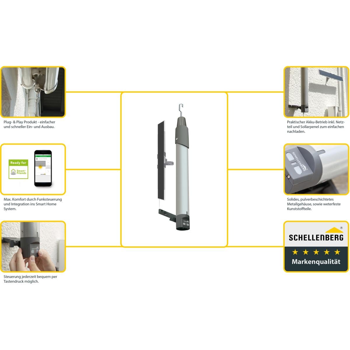 Schellenberg Premium Markisenantrieb mit Solarpanel, inklusive Netzteil und Wandhalterung, grau
