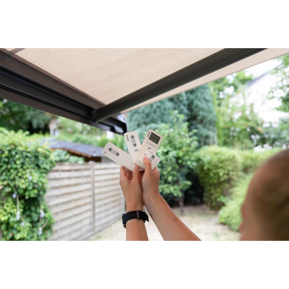 - Manuell - mithilfe von zwei Tasten direkt am Markisenantrieb: Bedienen Sie den Antrieb manuell auf Knopfdruck.