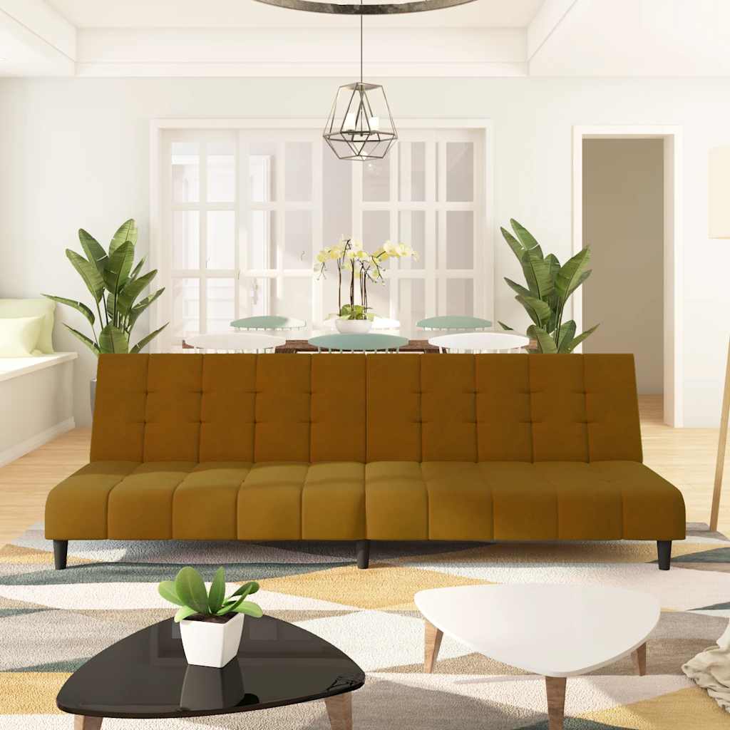 Dieses Schlafsofa ist die perfekte Lösung für die Unterbringung von Übernachtungsgästen und bietet tagsüber eine bequeme Sitzgelegenheit. 2-in-1-Funktion: Dieses Schlafsofa lässt sich schnell und einfach von einem Sofa in ein Bett und wieder zurück verwandeln. Die zwei separaten Rückenlehnen können teilweise oder ganz nach unten gedrückt werden, um den idealen Platz für ein Nickerchen oder ein Doppelbett zu schaffen.Komfortables Sitzerlebnis: Dieses Schlafsofa ist mit weichem und bequemem Samt bezogen. Samt ist ein weicher, luxuriöser Stoff, der sich durch seinen dichten und glatten Flor aus gleichmäßig geschnittenen Fasern auszeichnet. Samt fühlt sich unverwechselbar weich und angenehm an.Robuster und stabiler Rahmen: Der Holzrahmen verleiht dem 2-Sitzer-Sofa Stabilität und Robustheit.Vielseitig einsetzbar: Dieses Schlafsofa eignet sich für verschiedene Räume wie Wohnzimmer, Heimkino, Keller, kleine Zimmer, Studentenzimmer, kleinere Wohnungen, Studios und Büros. Es bietet unvergessliche Momente mit der Familie und wertet außerdem jedes Zimmer auf.