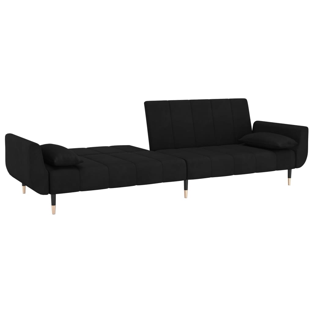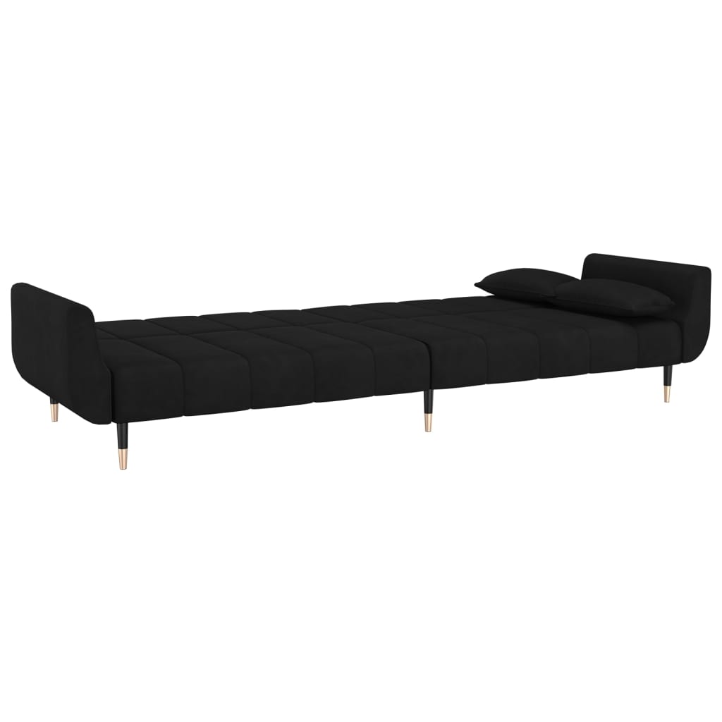 Dieses Sofa lässt sich einfach in ein Bett umwandeln. So können Sie je nach Ihren Vorlieben zwischen Sitz-, Lounge- oder Schlafposition auswählen. Es ist das ideale Möbelstück, wenn Sie zusätzlichen Schlafplatz für Freunde oder Übernachtungsgäste benötigen. Weiches und komfortables Material: Samt besitzt eine zarte Textur und fühlt sich weich und angenehm an.Verstellbare Rückenlehne: Sie können die zwei separaten Rückenlehnen teilweise oder ganz nach unten schieben, um den idealen Platz für ein Nickerchen oder ein Doppelbett zu schaffen.Robust und stabil: Der Holzrahmen und die Metallbeine des Schlafsofas sorgen für Robustheit und Stabilität.Zwei Kissen für mehr Komfort: Zu Ihrer Bequemlichkeit sind auch zwei Kissen im Lieferumfang enthalten.